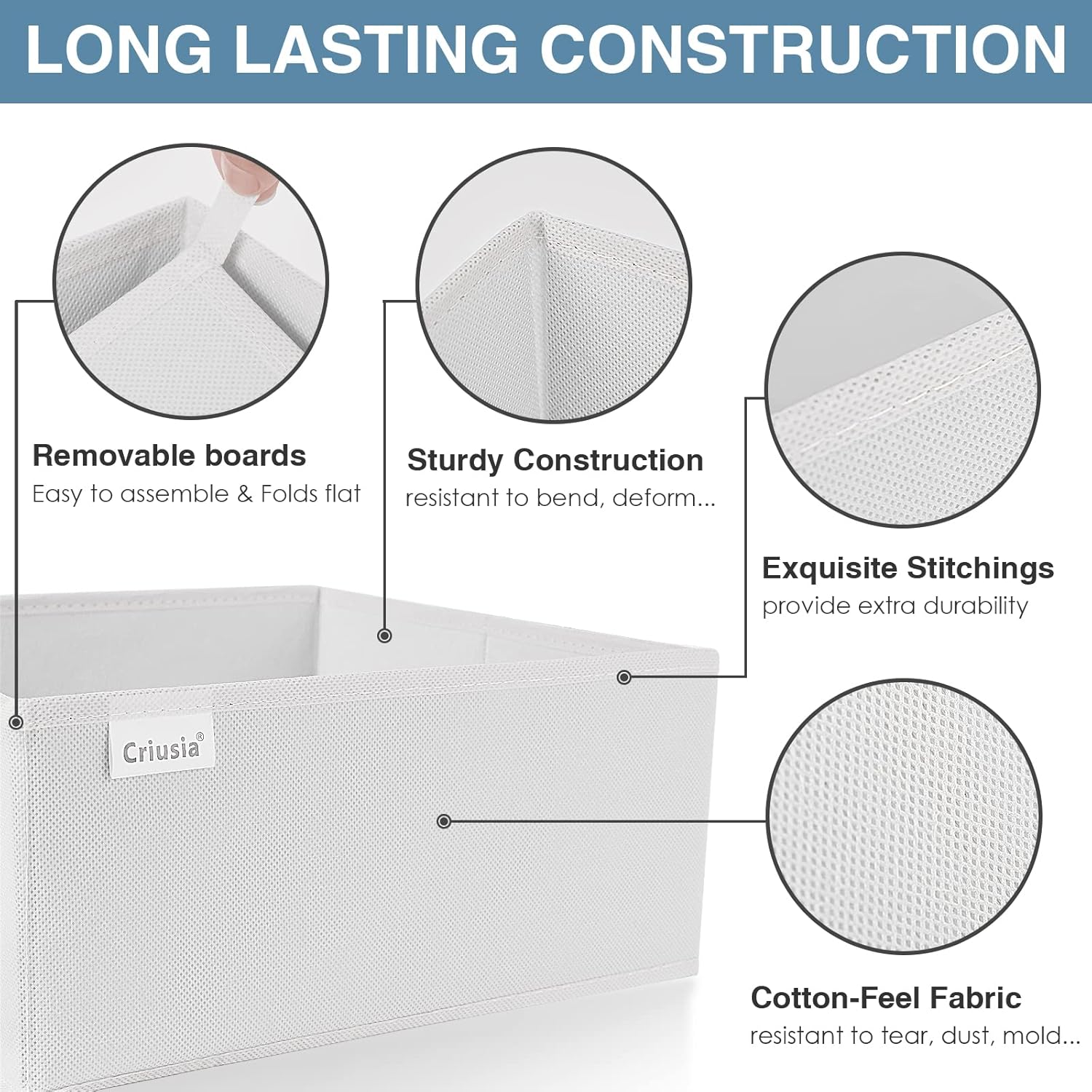 Criusia Drawer Organizer Clothes, 8 Pack Underwear Drawer Organizer, Foldable Closet Organizers and Storage Dresser Drawer Dividers for Clothes, Socks, Scarves, Ties (White)