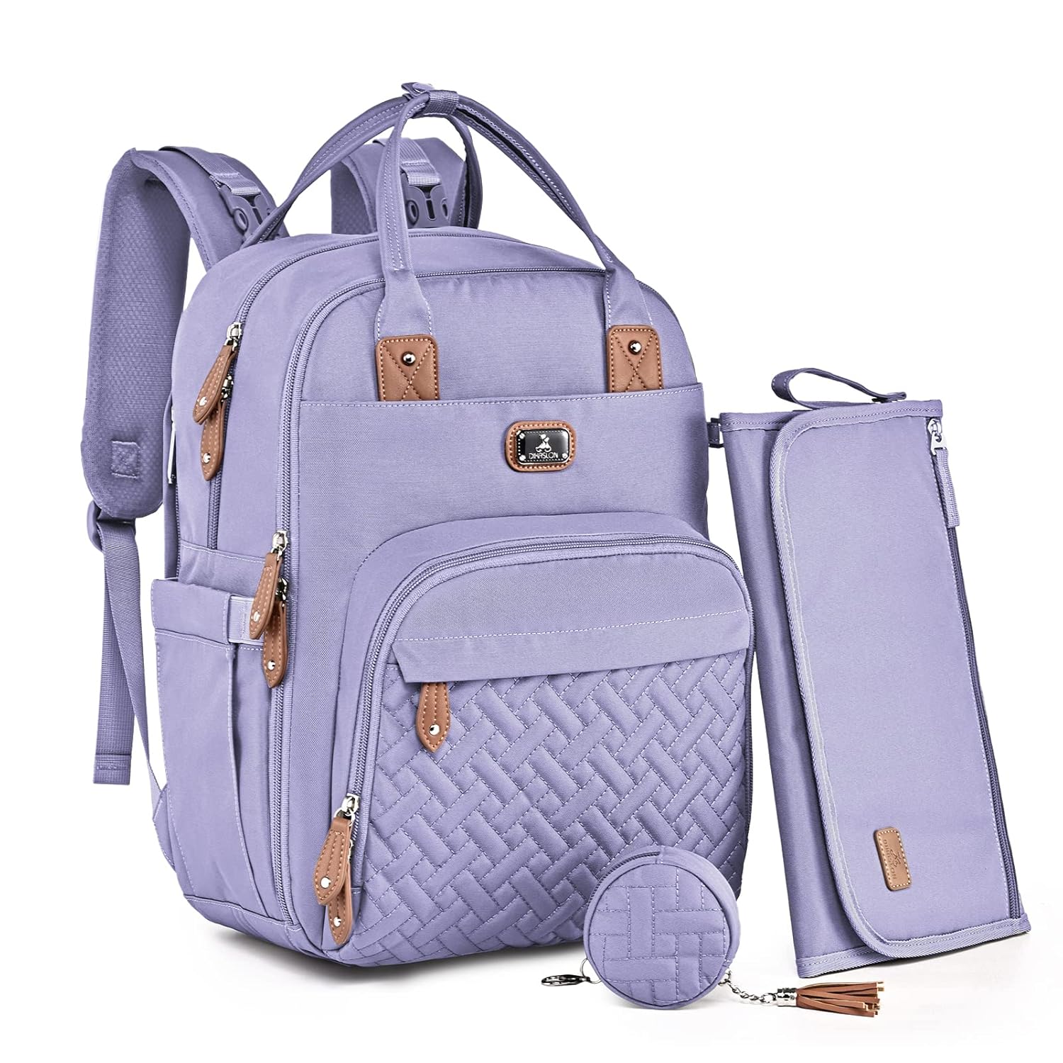 Dikaslon Diaper Bag Backpack with Portable Changing Pad, Pacifier Case and Stroller Straps, Large Unisex Baby Bags for Boys Girls, Multipurpose Travel Back Pack Moms Dads, Taro Purple