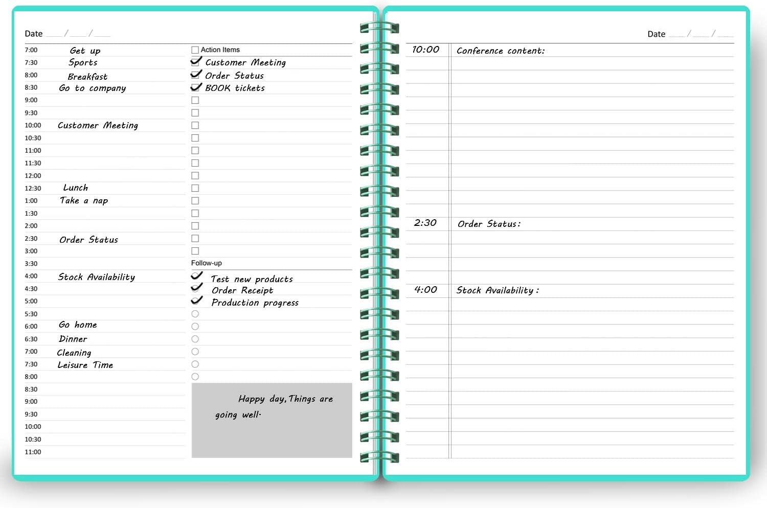 - KEEP FOCUSED & ACHIEVE YOUR GOALS - This daily organizer with appointments from 7:00 AM to 11:00 PM in 30-minute intervals, allows you to keep track of every appointments, action items and follow-ups with space for your top goals and task. This to do list planner could help you to save time and achieve your goals