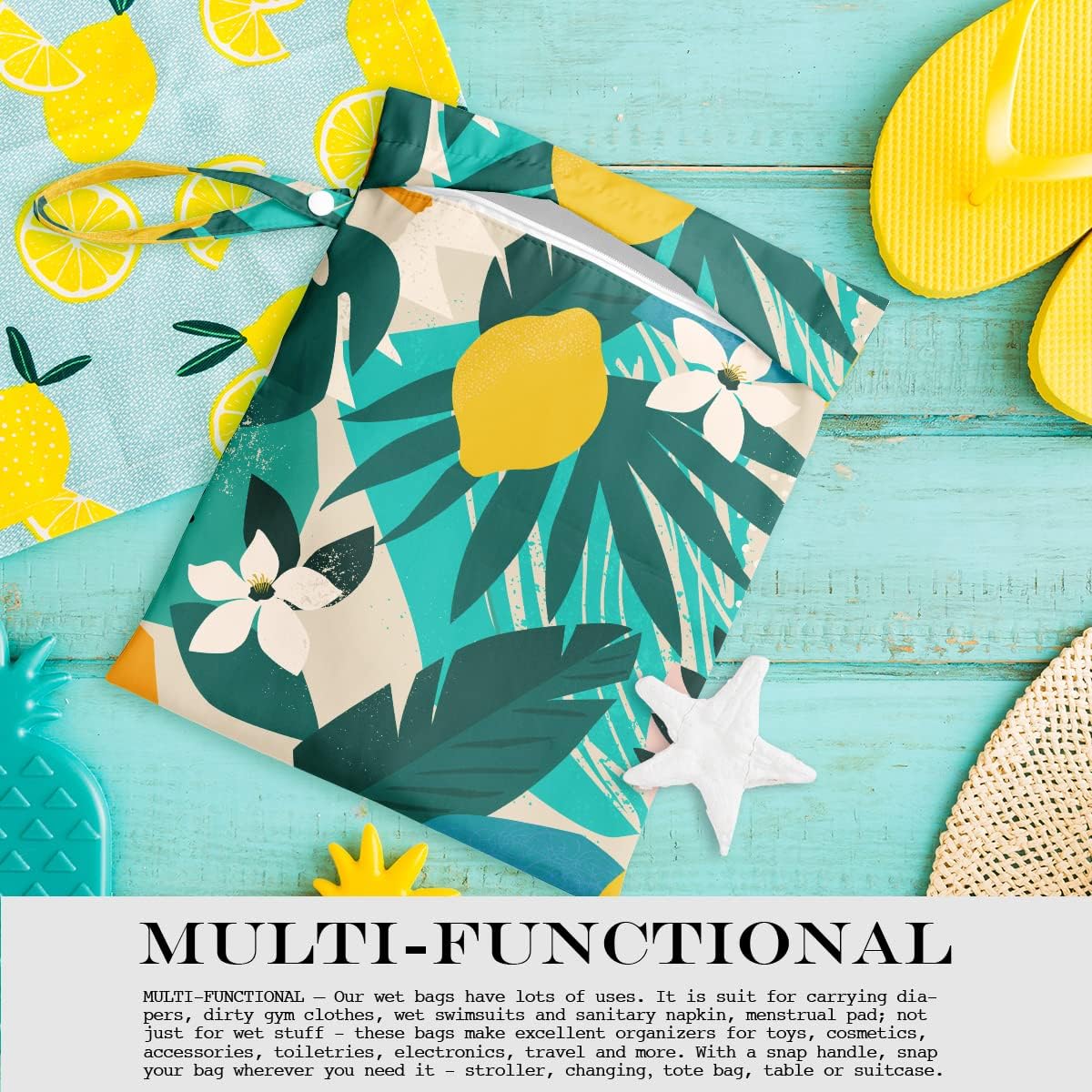- MULTI-FUNCTIONAL – Our wet bags have lots of uses. It is suit for carrying diapers, dirty gym clothes, wet swimsuits and sanitary napkin, menstrual pad; not just for wet stuff - these bags make excellent organizers for toys, cosmetics, accessories, toiletries, electronics, travel and more. With a snap handle, snap your bag wherever you need it - , changing,tote bag, table or suitcase.