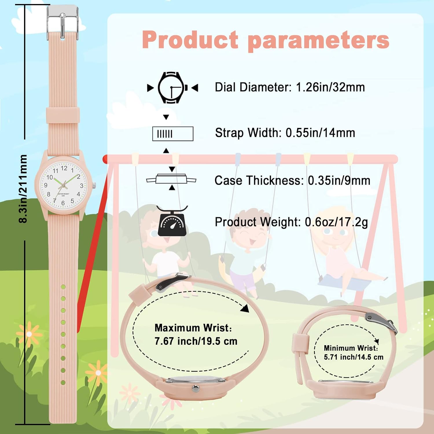 - Time teaching kids watch: This analog watch adopts a high-definition acrylic mirror, which can clearly see the numbers and green hands of the dial, improving the efficiency of learning time.