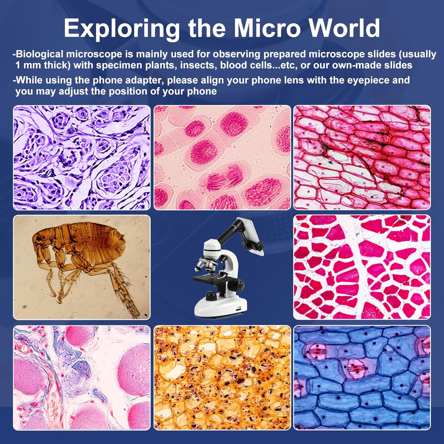 Microscope for Adults Kids Students, 100X-2000X Microscopes, Metal-Body Dual LED Illumination, Biological Compound Monocular Microscope Kit for School Lab, Homeschool w/Phone Adapter