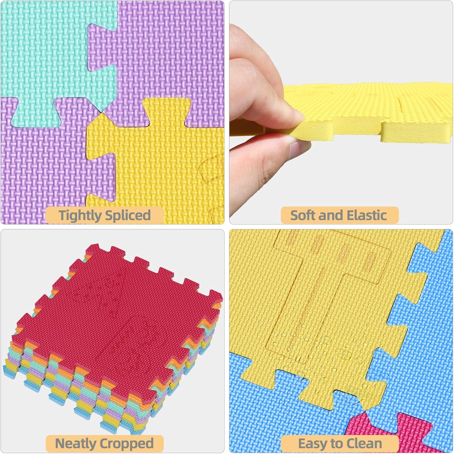 - ALPHABET & NUMBERS LASER PATTERN PUZZLE MAT - The non-removable Alphabet & Numbers laser pattern is for the baby to learn to play, effectively prevent the baby from suffocating, and make storage easier.