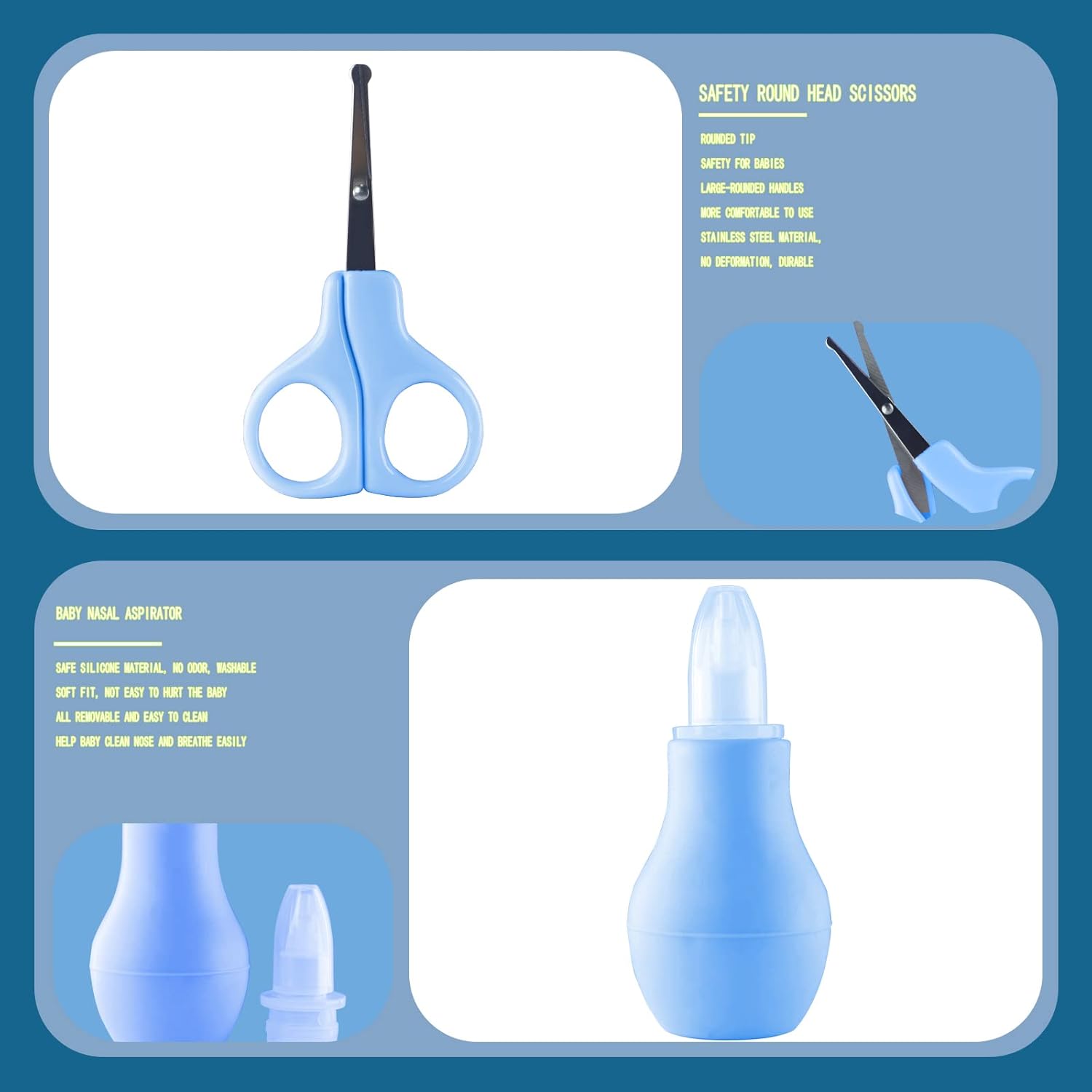 Baby Grooming Kit, Baby Essentials for Newborns, Portable Baby Care Kit, Contains Baby Nail Clippers, Baby Comb, Baby Brush, Baby Ear Wax Removal Tool and More (10 in 1) (Blue)