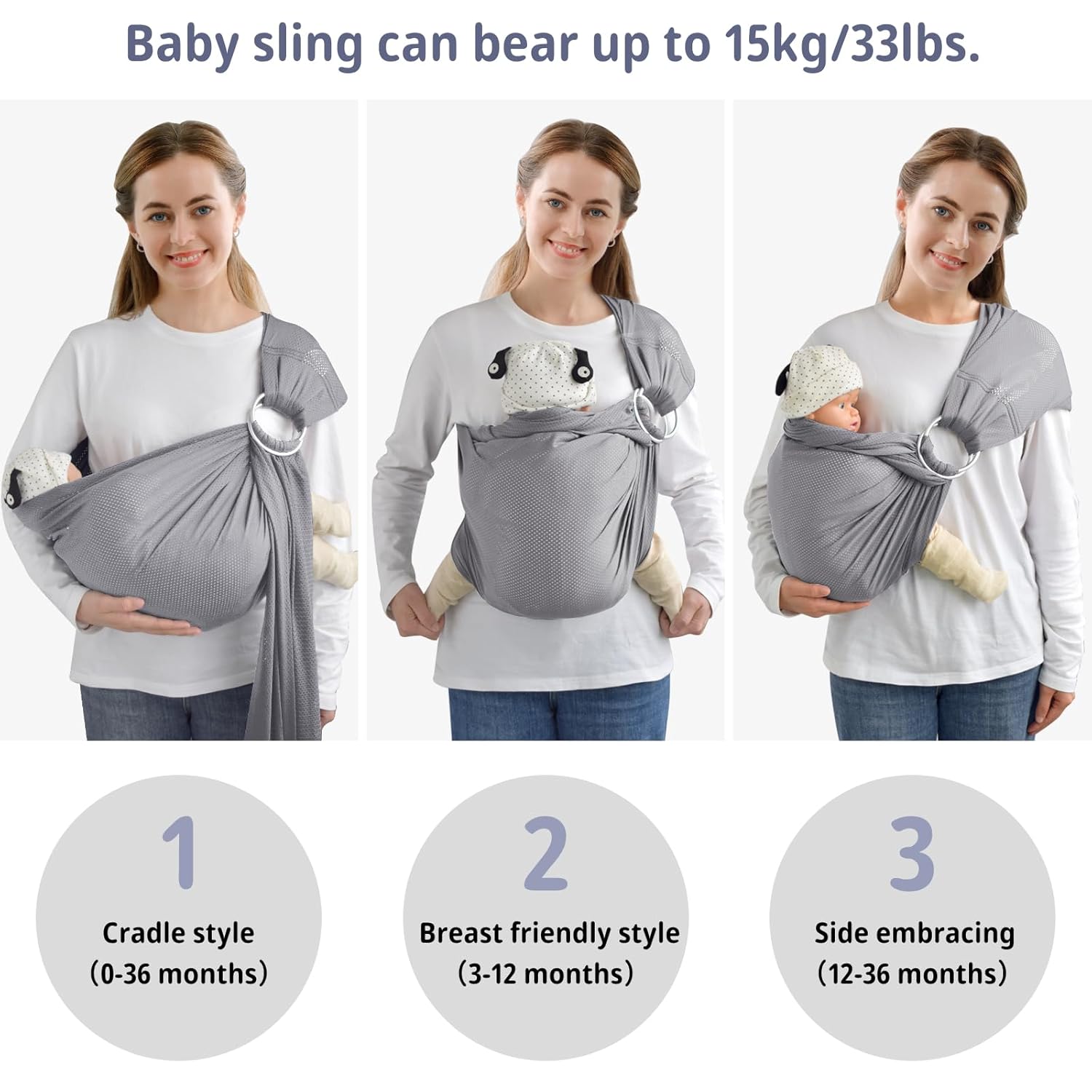- Breathable for Baby: Our baby sling is made of 100% polyester. Summer special mesh fabric, breathable, quick-drying, not stuffy sweat, let the baby free to breathe fresh air! All variants available in size 200cmx70cm. Ideal for premature baby, newborns and babies, can hold up to 15 kg/33lb