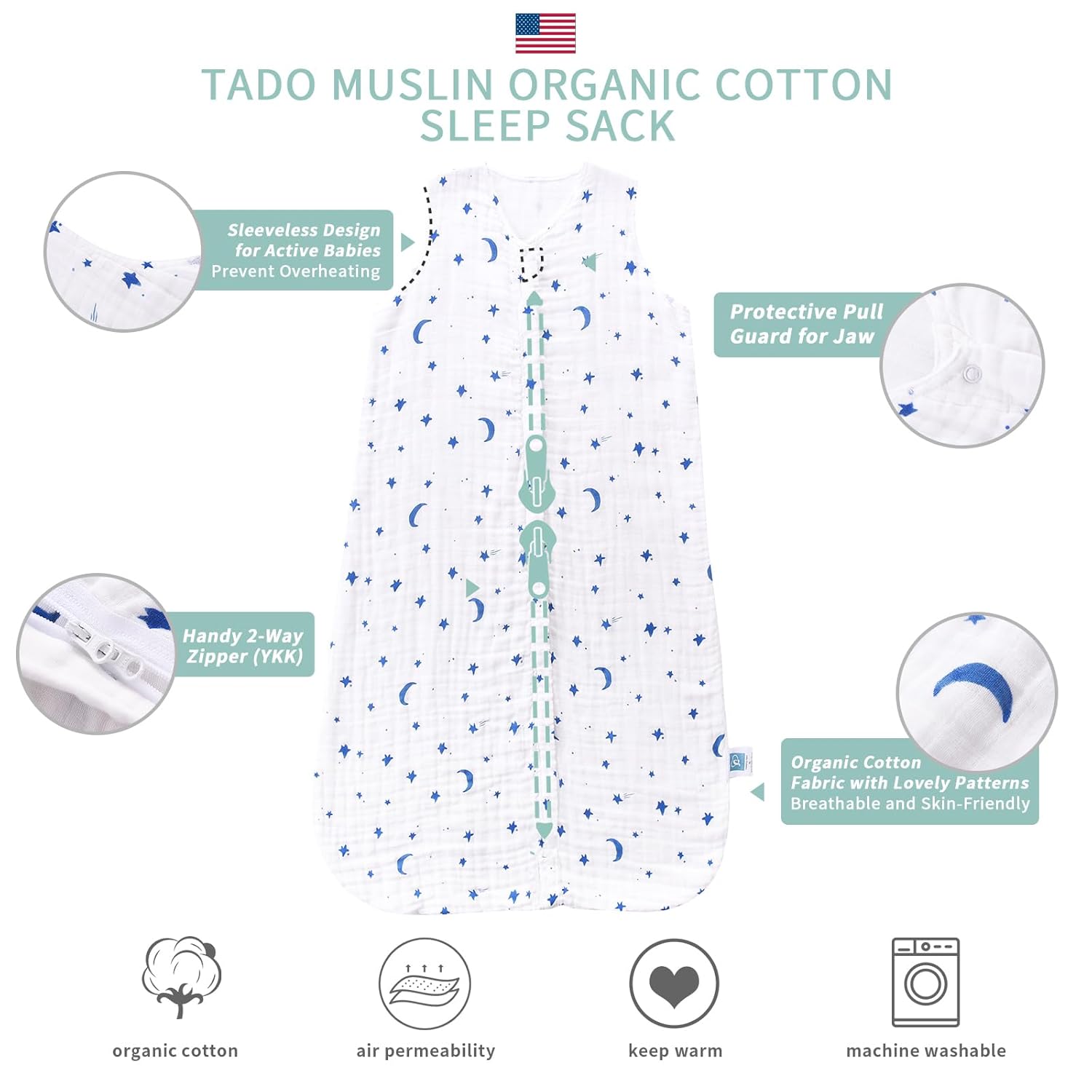 - TADO MUSLIN: Your Trusted Sleep Solution: As a leading brand in premium baby products, we prioritize your child's comfort and safety. Our sleep sacks are OEKO-TEX certified. The cute pattern on the sleep sack is colorful, fade-resistant, and durable through many washes. TADO MUSLIN sleep sacks offer the perfect blend of quality, durability, and style. Choose TADO MUSLIN for a sleep environment that nurtures your little one's growth and development