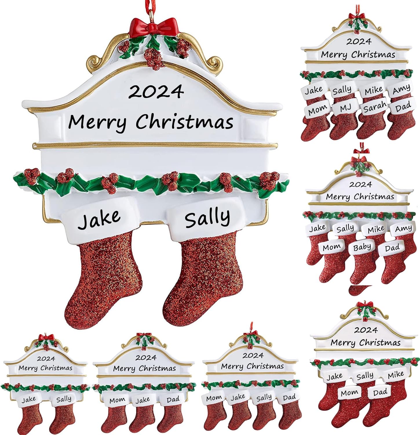Personalized Christmas Ornaments 2025 Family of 2/3/4/5/6/7/8 Custom Christmas Stocking Ornament with Names Customized Ornaments for Xmas Tree,Family of 2