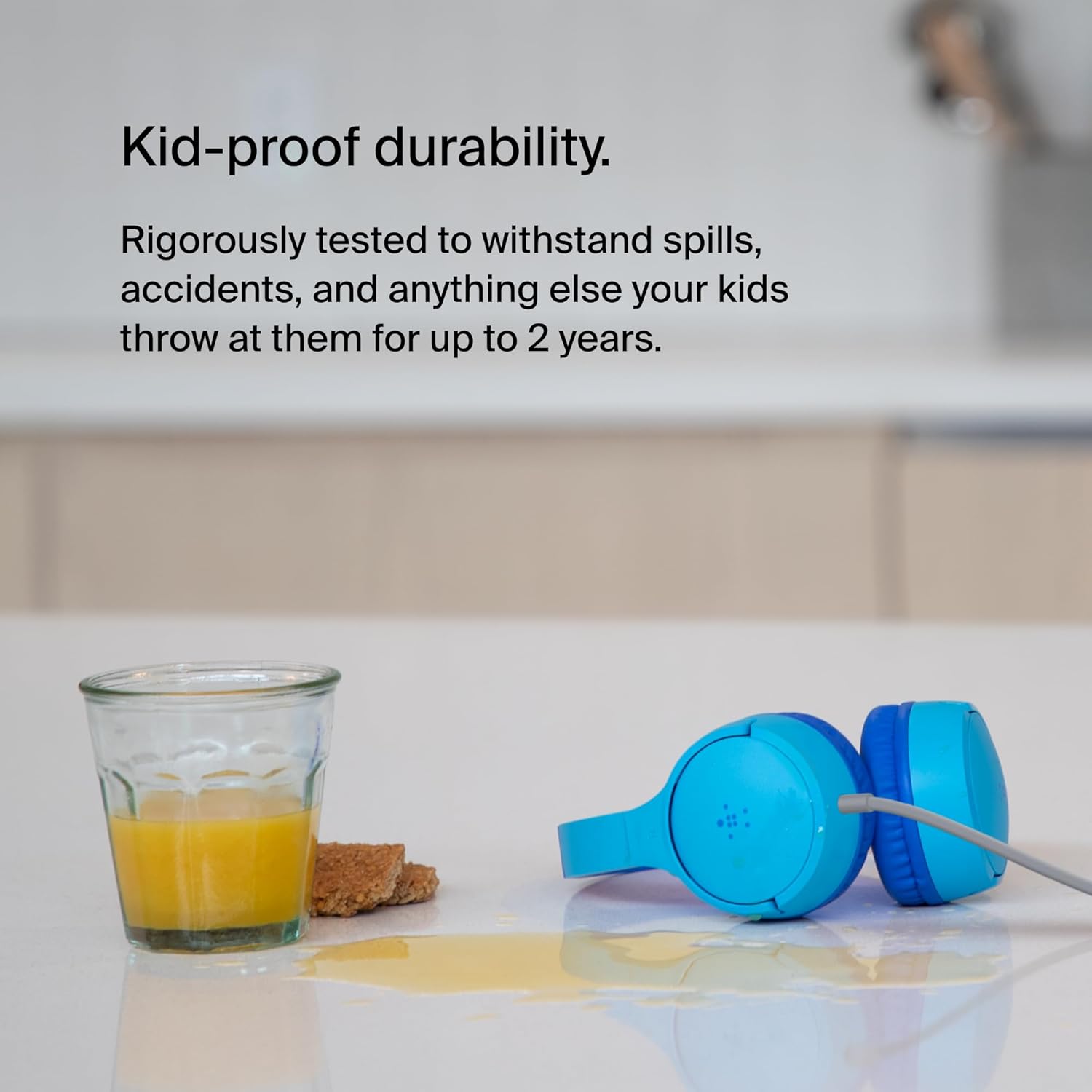 - BUILT-IN MICROPHONE and SAFE SOUND: The wire has a built-in microphone for video and phone calls. And with Belkin Signature Sound with audio tuned specifically for kids, this headphone set has an 85dB volume limiter to protect your little one's ears.