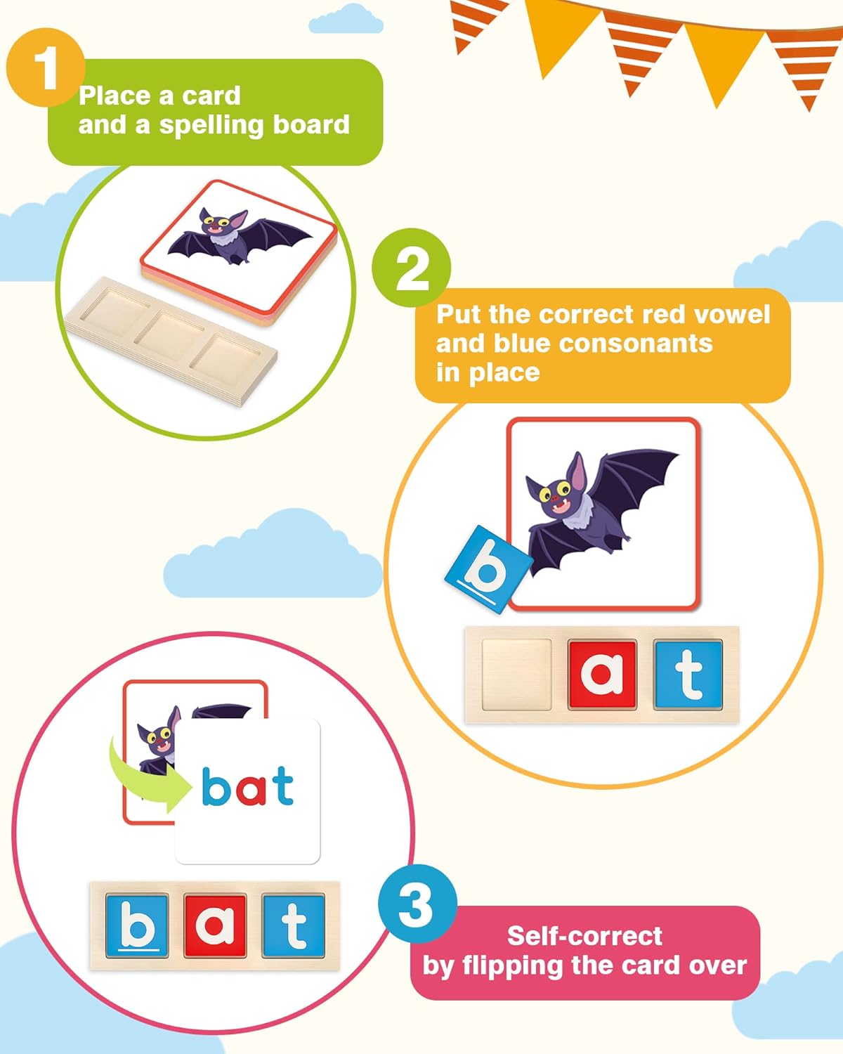 - Fun Learning Activity Games: This CVC word flash cards set is an interactive learning game for 3 4 5 6 year old boys & girls. The colors and pictures can catch the kidโs eyes and keep their attention, which can help them have fun while learning reading, spelling and phonics skills.