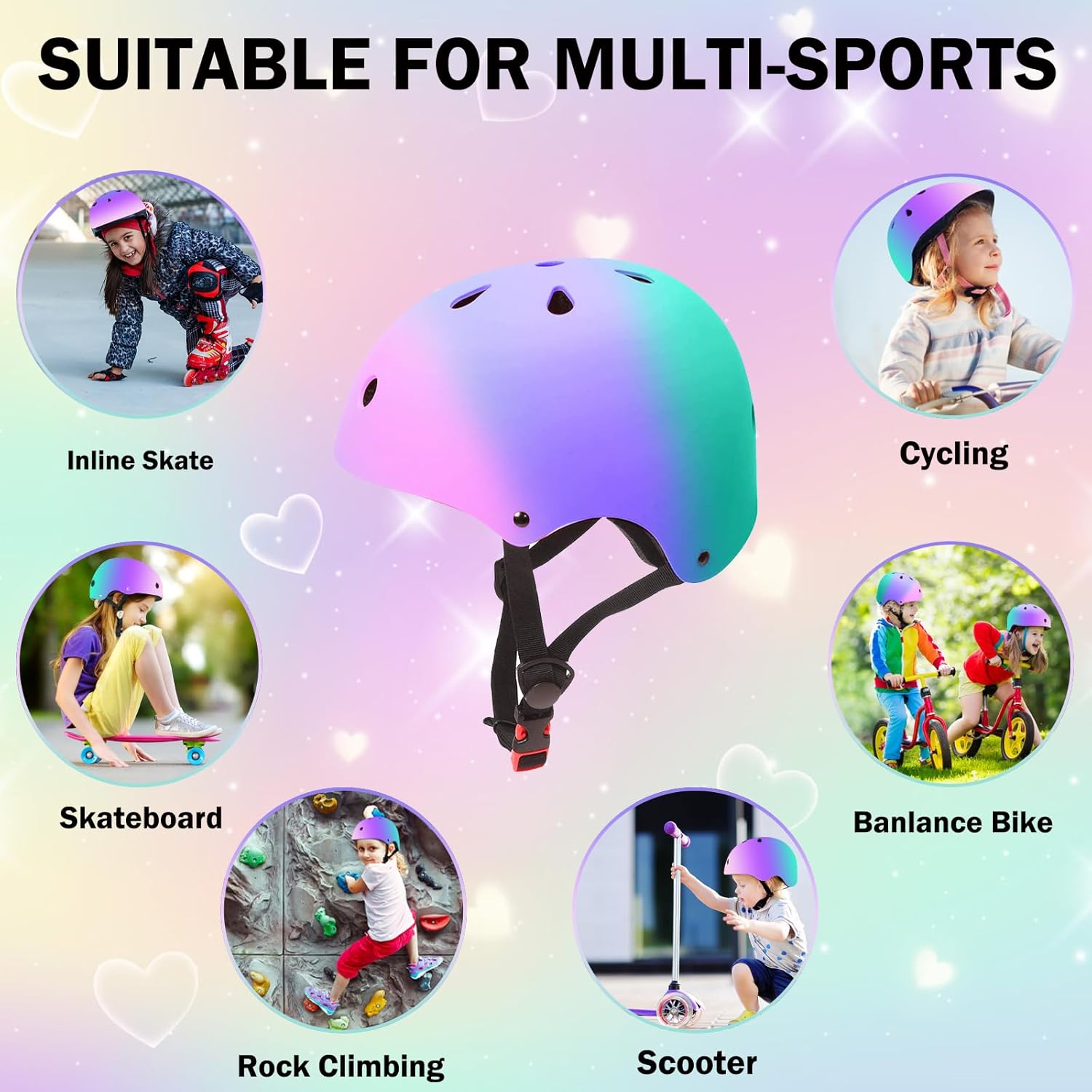 - π [Multi-sport Helmet]: Our girls bike helmet are specially designed to meet safety standards for multiple sports activities, like bike, skateboarding, scooter, inline skating.