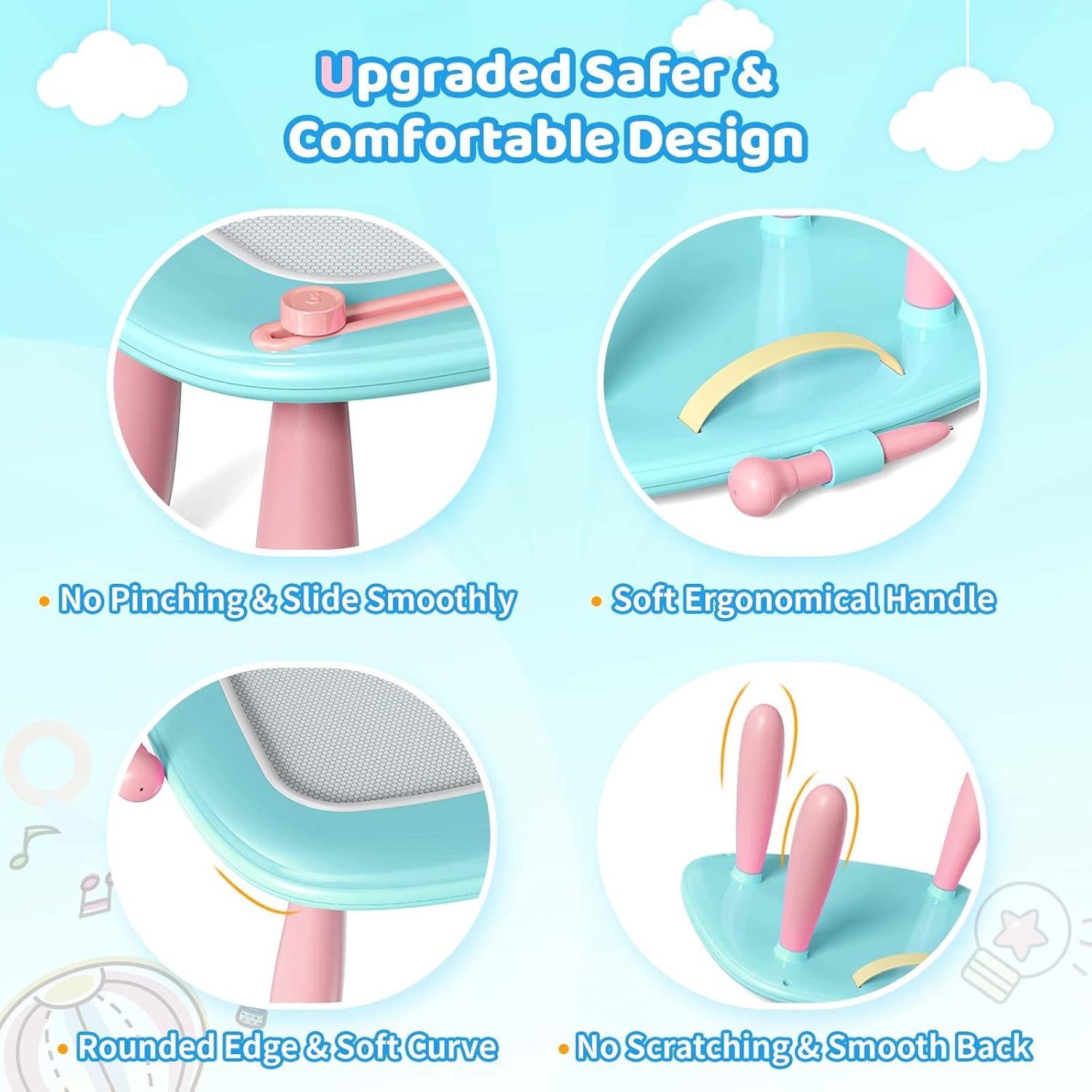 - Safety: Our magnetic drawing board is crafted with top-notch ABS material, ensuring both durability and quality. Safety is our utmost priority, which is why this board is non-toxic, BPA-free, and free from any small parts that could pose a choking hazard. We've taken extra precautions to make it child-friendly, with a Full-Sealed back and rounded corners to prevent any accidental scratches.