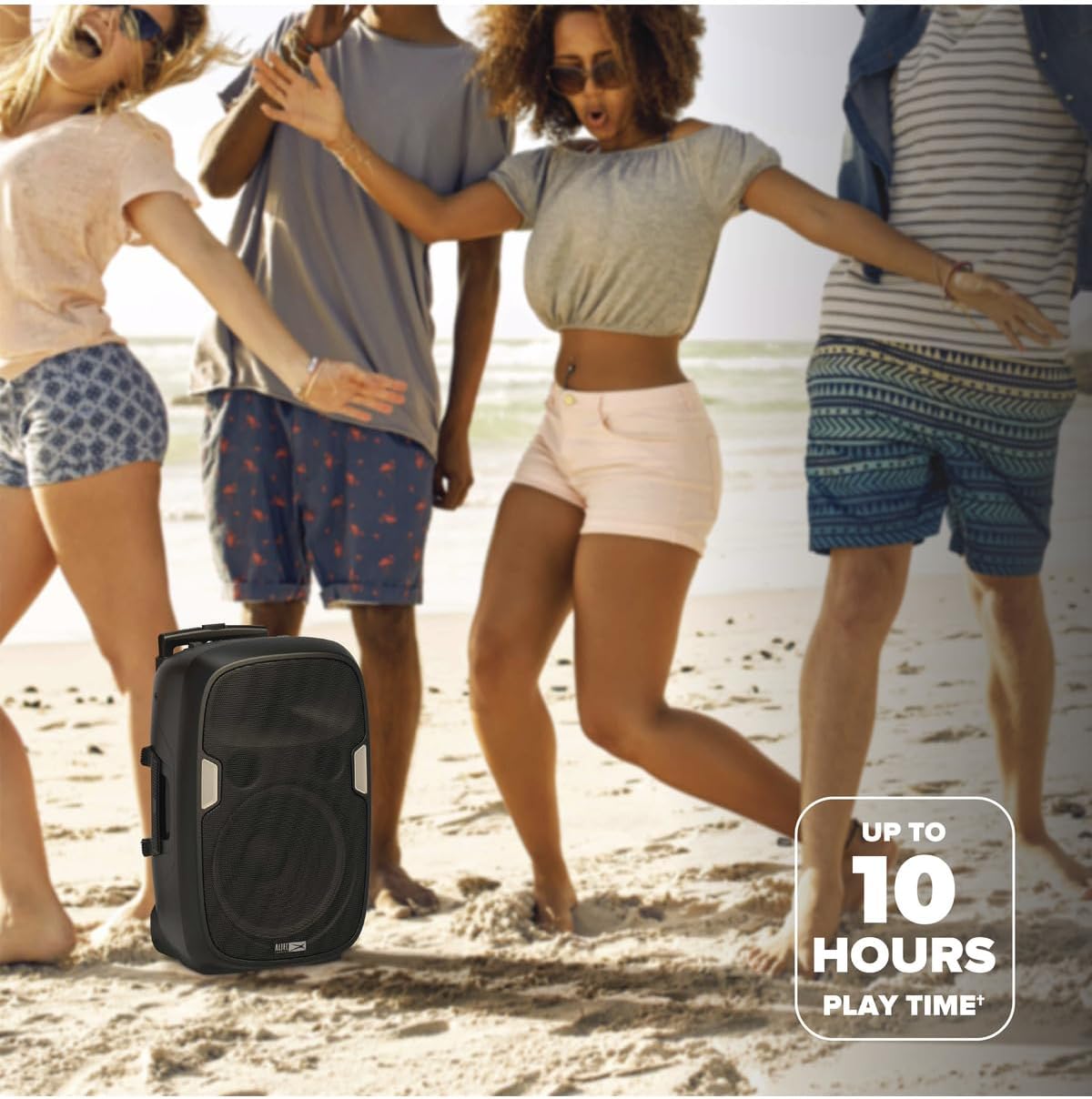 - Long Lasting Battery: with a 4-hour battery life while using Bluetooth, the Shockwave 200 is built to power the whole party! Enjoy nonstop music while connected to Bluetooth for up to 10 hours or plug it into any power source and enjoy unlimited tunes!