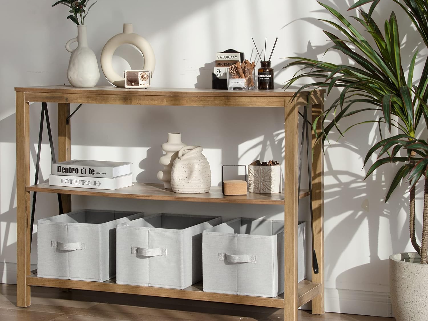 - The natural fiber and the inserted heavy-duty boards allow the storage bins to hold a weight of up to 30 pounds.
