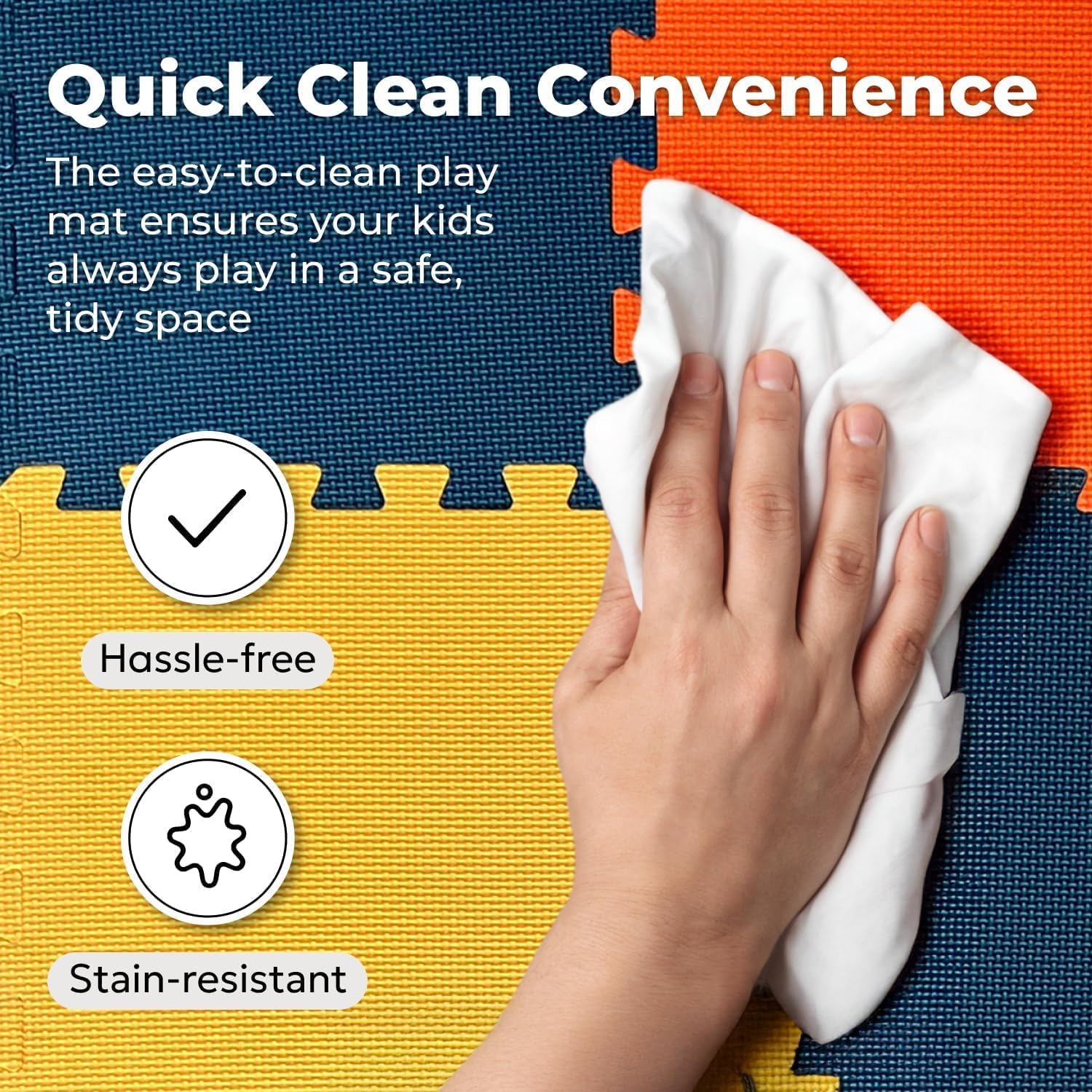 - π΄ EASY-TO-ASSEMBLE INTERLOCKING FOAM TILES: Our 12.4 x 12.4-inch interlocking foam tiles fit securely together, creating a customised play area for any room. Choose from our 16-piece set (covers 16 sq ft) or 36-piece set (covers 36 sq ft), each with matching borders for a polished look.
