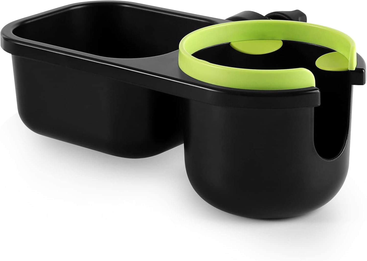 - The 2 in 1 multifunctional holder includes a snack catcher and drink holder for snacks on the go. Ideal for mom and baby.