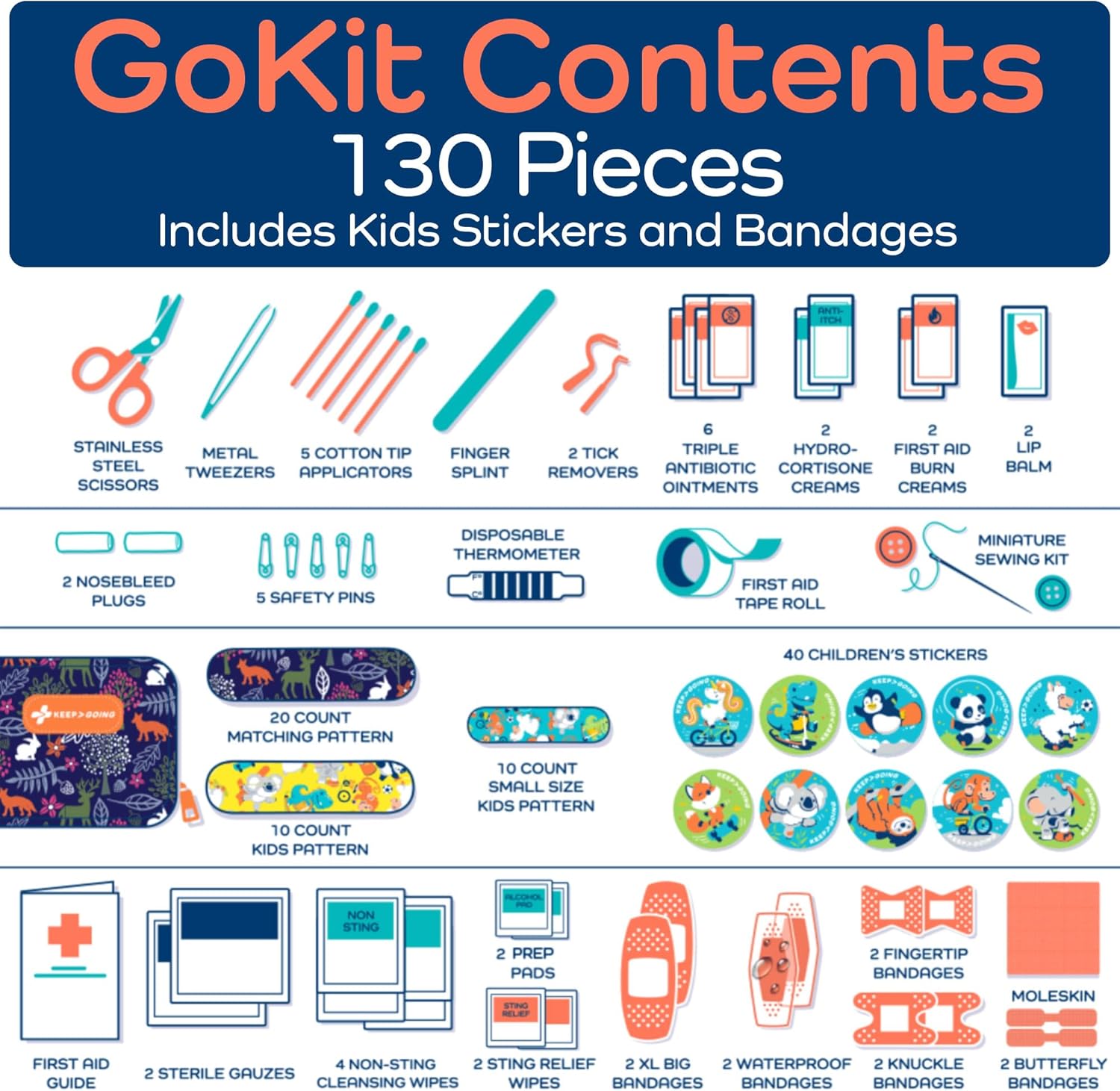 KeepGoing Travel First Aid Kit for Kids – 130 Pc. for Car, Home, Purse, Diaper Bag & Backpack with Latex-Free Bandages - Mini First Aid Kit Travel Size TSA-Approved
