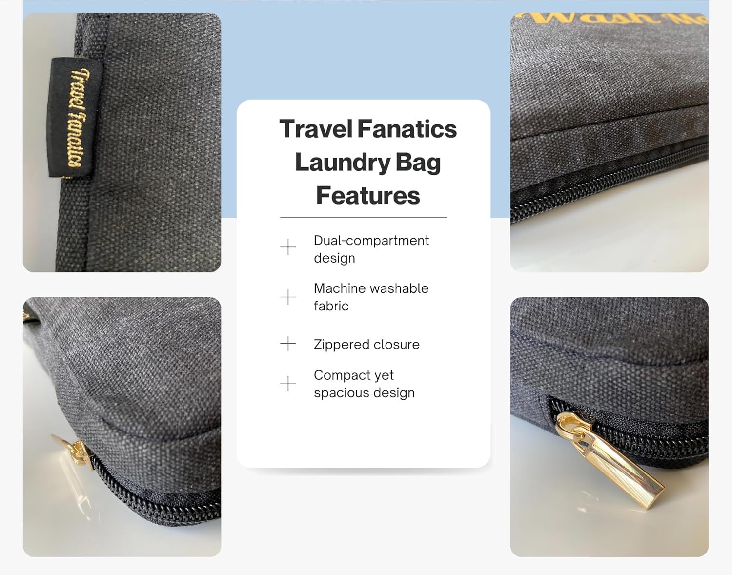 Travel Fanatics Wear Me, Wash Me Bag – 2-Sided Travel Laundry Bag with Stylish Design – Lightweight, Portable, and Durable Canvas Laundry Bag Organizer for Clean and Dirty Clothes