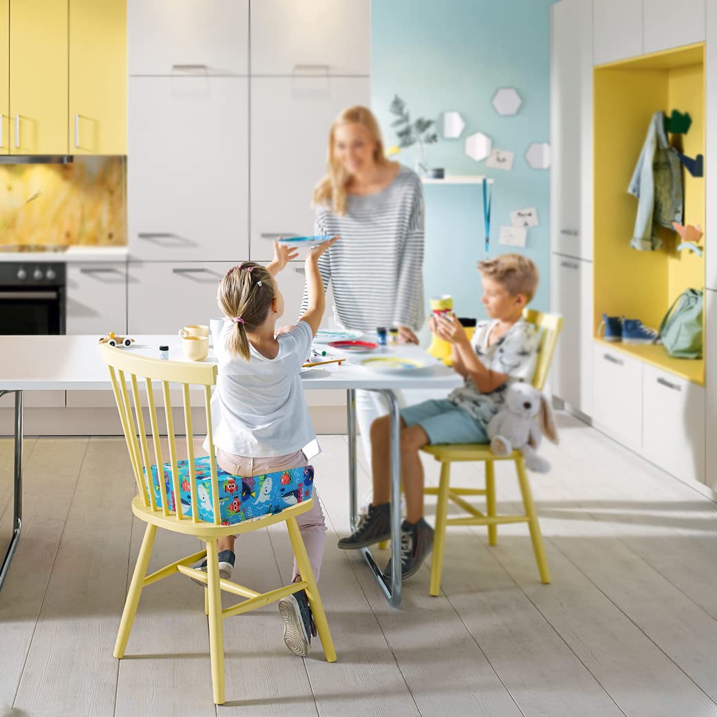 Toddler Booster Seat for Dining Table,4 Inches Washable Double Safer Straps Non-Slip Bottom Booster Seat for Kids, Portable Travel High Density Sponge Detachable Increasing Cushion for Child