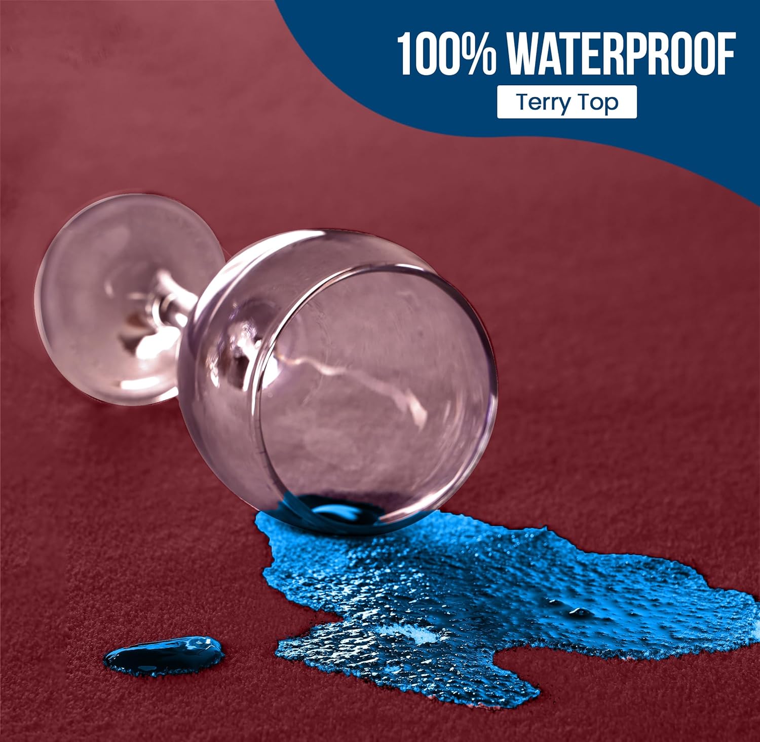 - Waterproof Terry Top - The mattress protector protects your mattress from unwelcome spills and keeps your mattress clean and safe. High-quality TPU backing secures your mattress from the top and resists any leakage into the mattress.