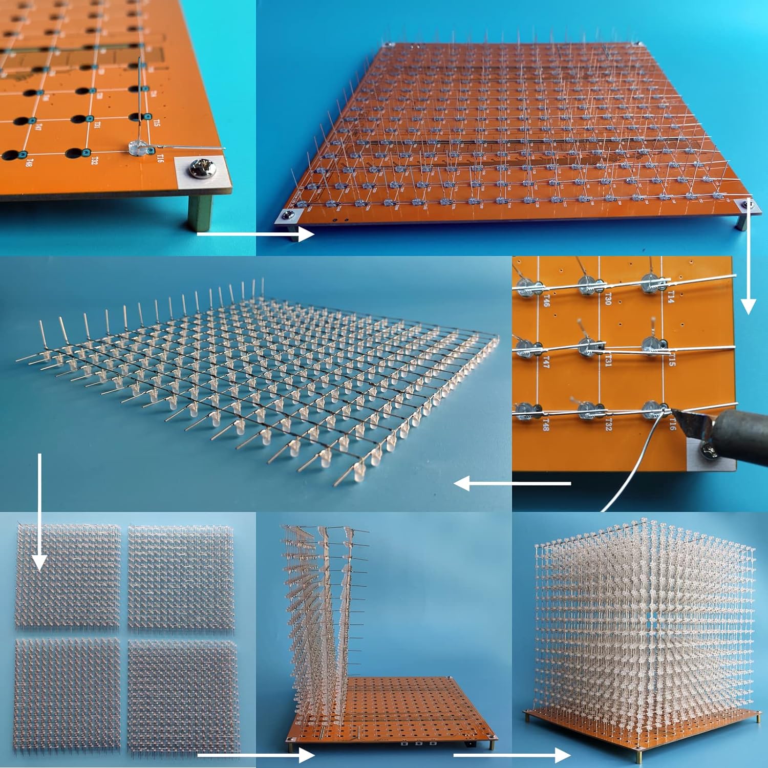 - [Difference between 3D8MINI and 3D16MiNi] The distance between LEDs and LEDs of 3D16MINI is 1.3cm, and the finished product size is 22x22x22cm. Its volume is 8 times larger than 3D8MiNi.