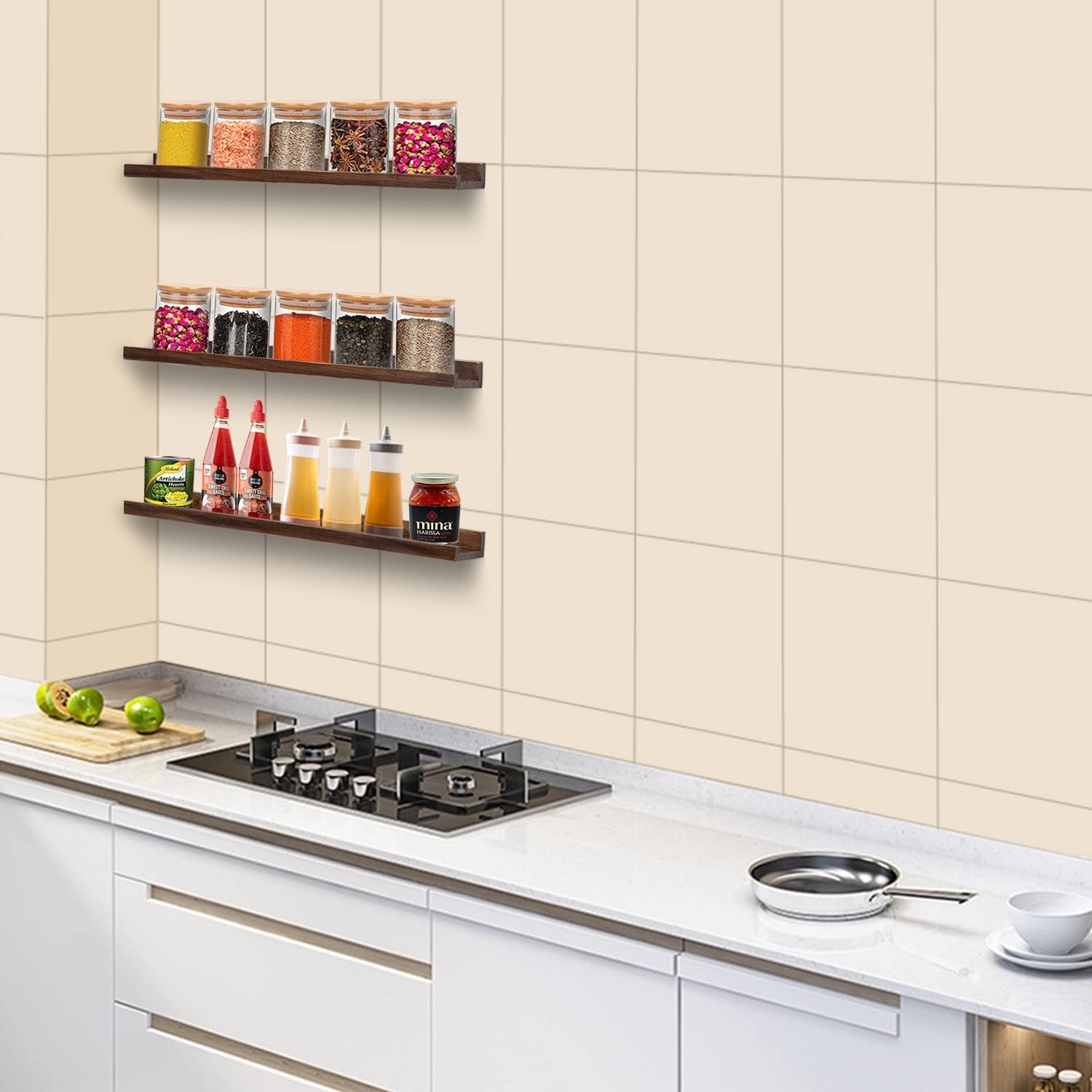 AZSKY 24 Inch Floating Shelves Rustic Wood Wall Shelf Deep Dark Walnut Floating Shelves a Set of 3 Hanging Narrow Picture Photo Ledge Shelves Wall Mounted Bathroom Bedroom Kitchen Office Décor
