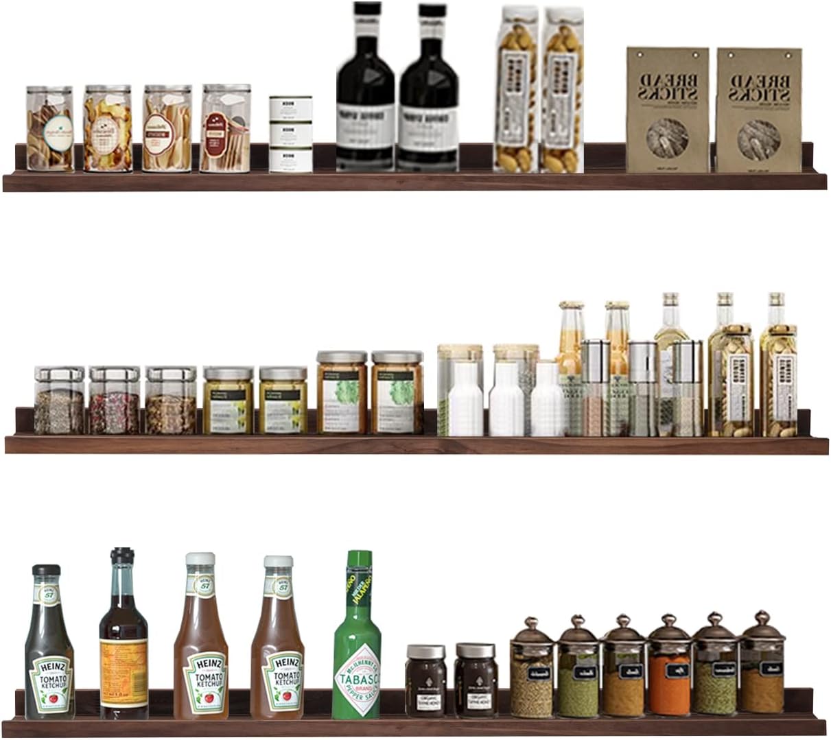 AZSKY Deep Walnut Floating Shelves Large Long Wall Storage Shelves Dark Walnut 48 Inch Wall Mount Hanging Picture Ledge Wall Decor for Bedroom Living Room Bathroom Kitchen Storage a Set of 3