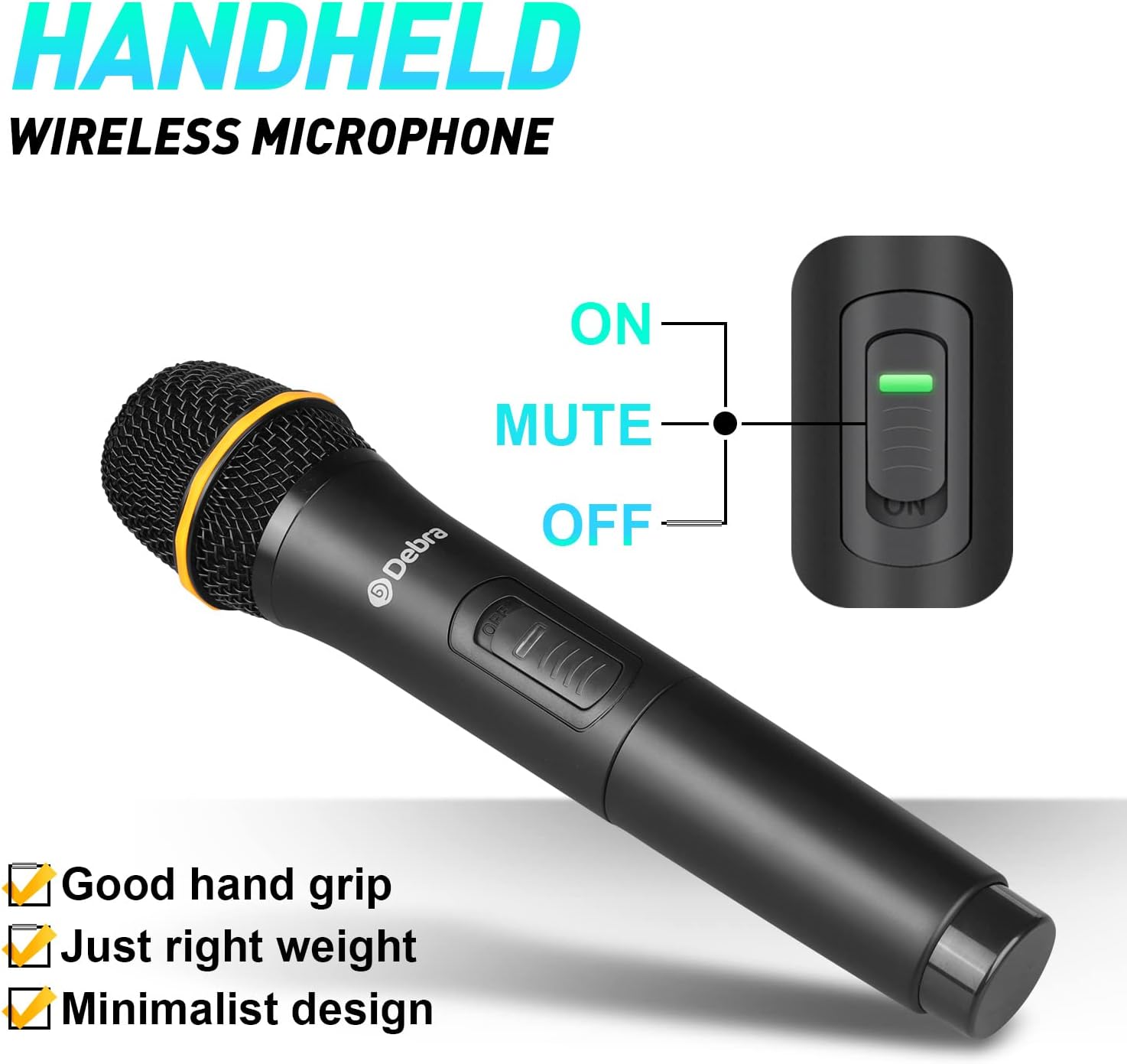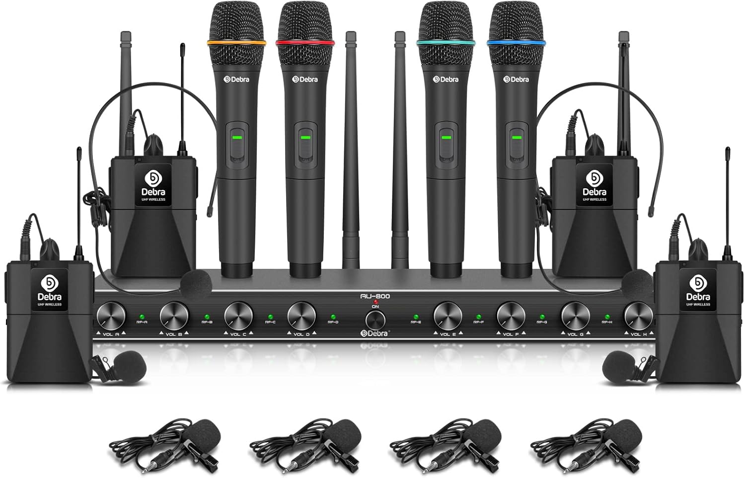 D Debra Audio AU800 Pro UHF 8 Channel Wireless Microphone System with Cordless Handheld Lavalier Headset Mics, Metal Receiver, Ideal for Karaoke Church Party (4 Handheld & 4 Bodypack)