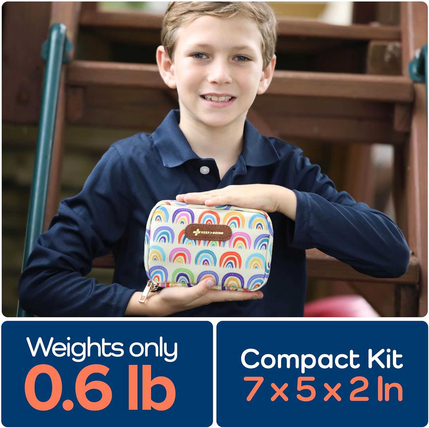 KeepGoing Travel First Aid Kit for Kids – 130 Pc. for Car, Home, Purse, Diaper Bag & Backpack with Latex-Free Bandages - Mini First Aid Kit Travel Size TSA-Approved
