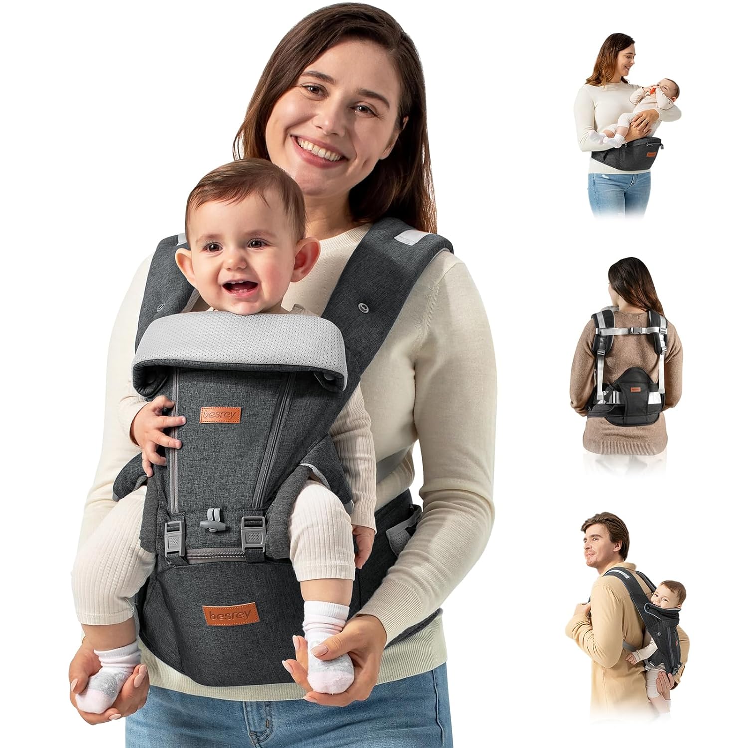 besrey Baby Carrier Hip Seat for Dad, Front Summer Infant Carrier Newborn to Toddler, Plus Men Backpack Holder, Harness for Carrying Infant, Hip Seat with Strap