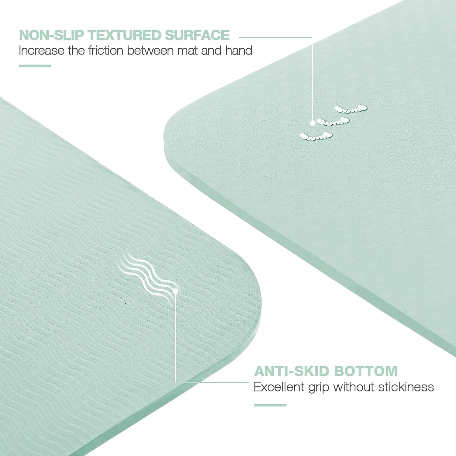 - DOUBLE NON-SLIP DESIGN - This workout mat has double-sided non-slip surfaces. Wavy undersides make excellent traction on the floor. It unrolls pretty flat and stays put. Special textured surface prevents your hands and feet from sliding when you sweat on it.