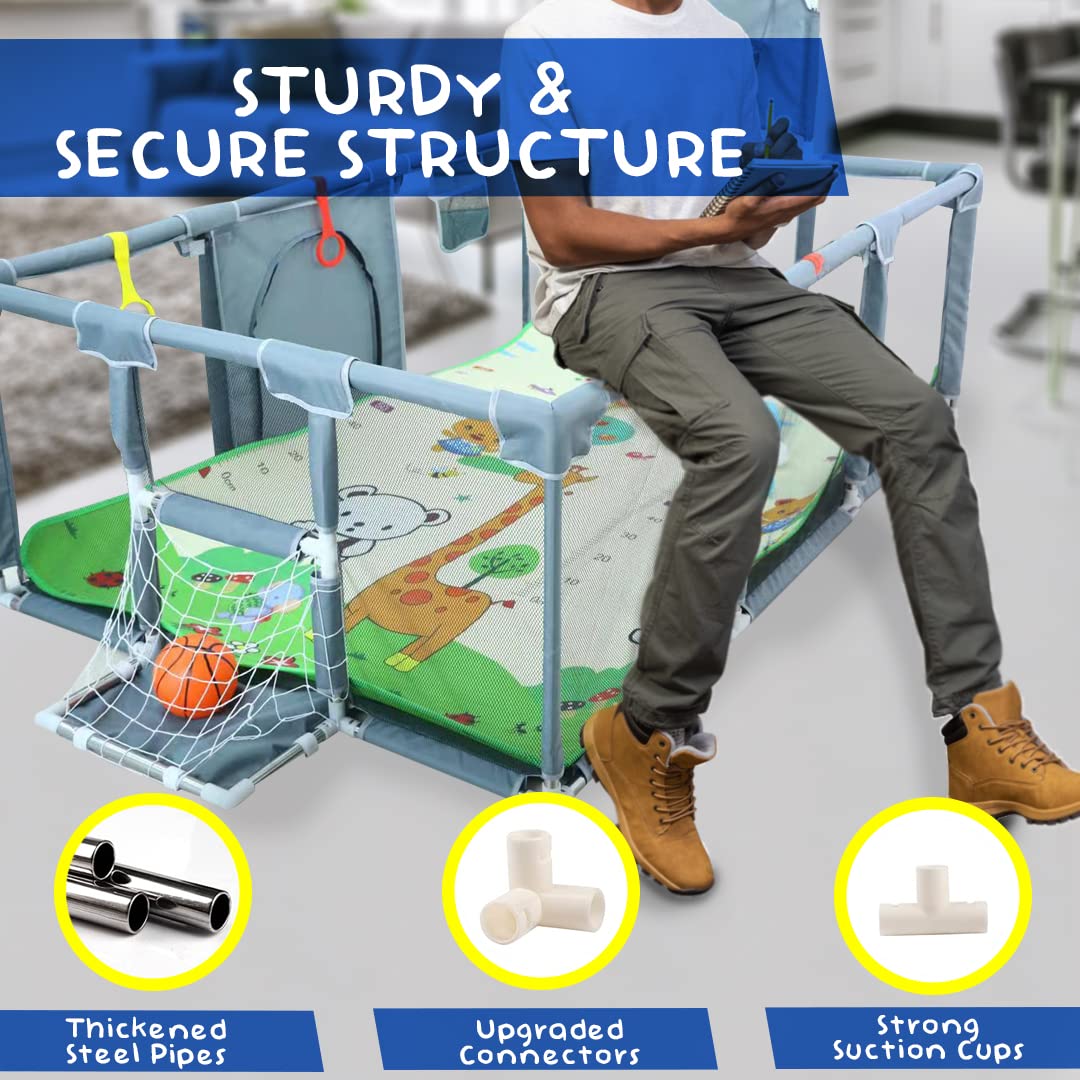 Upgrated Baby Playpen with Mat, Playpen for Babies and Toddlers, Large Playpen with Mat, Sport Playpen, Play Pen with Accessories, Baby Fence, PlayPen Indoor & Outdoor Activity, Sturdy Kids