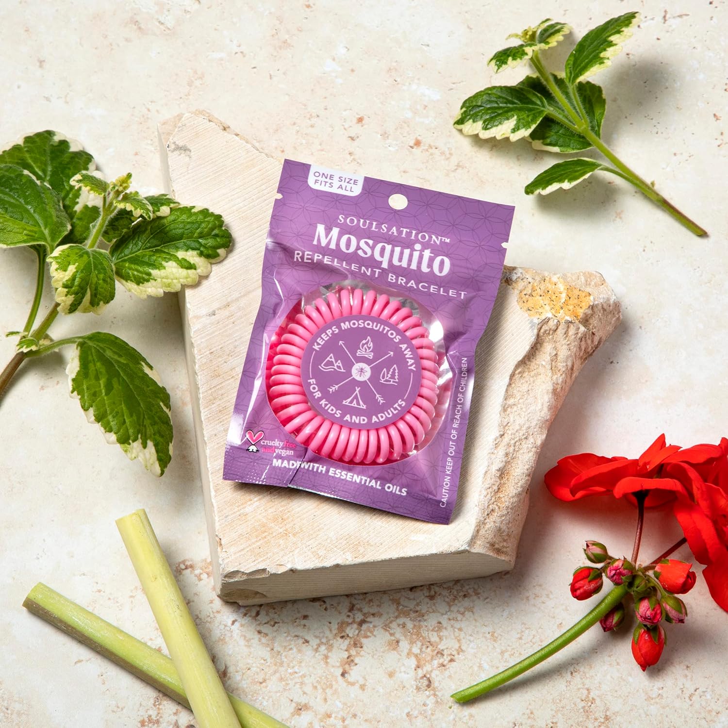 - DEET Free, Made with Essential Oils β Our repellent bracelets are made with natural essential oils: Geranium, Lemongrass and Citronella. Essential oils have been found to repel mosquitoes.
