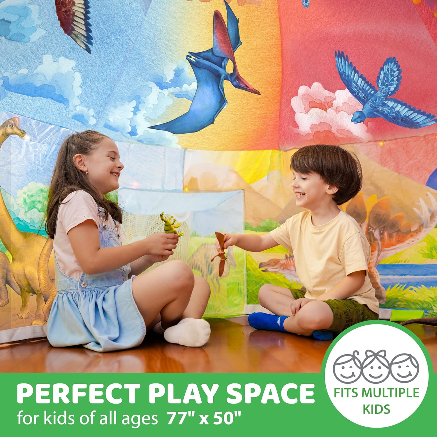 - ๐ฆ ๐๐ง๐๐ฅ๐๐ญ๐๐ฌ ๐ข๐ง ๐๐๐๐จ๐ง๐๐ฌ, ๐๐ฆ๐ฆ๐๐ซ๐ฌ๐ข๐ฏ๐ ๐๐ฑ๐ฉ๐๐ซ๐ข๐๐ง๐๐ - Get the airflow going and watch the Dino indoor tent spring to life. Crawl inside to find yourself in a dinosaur-filled world! The gentle breeze and bright graphics makes playtime feel like a prehistoric universe.