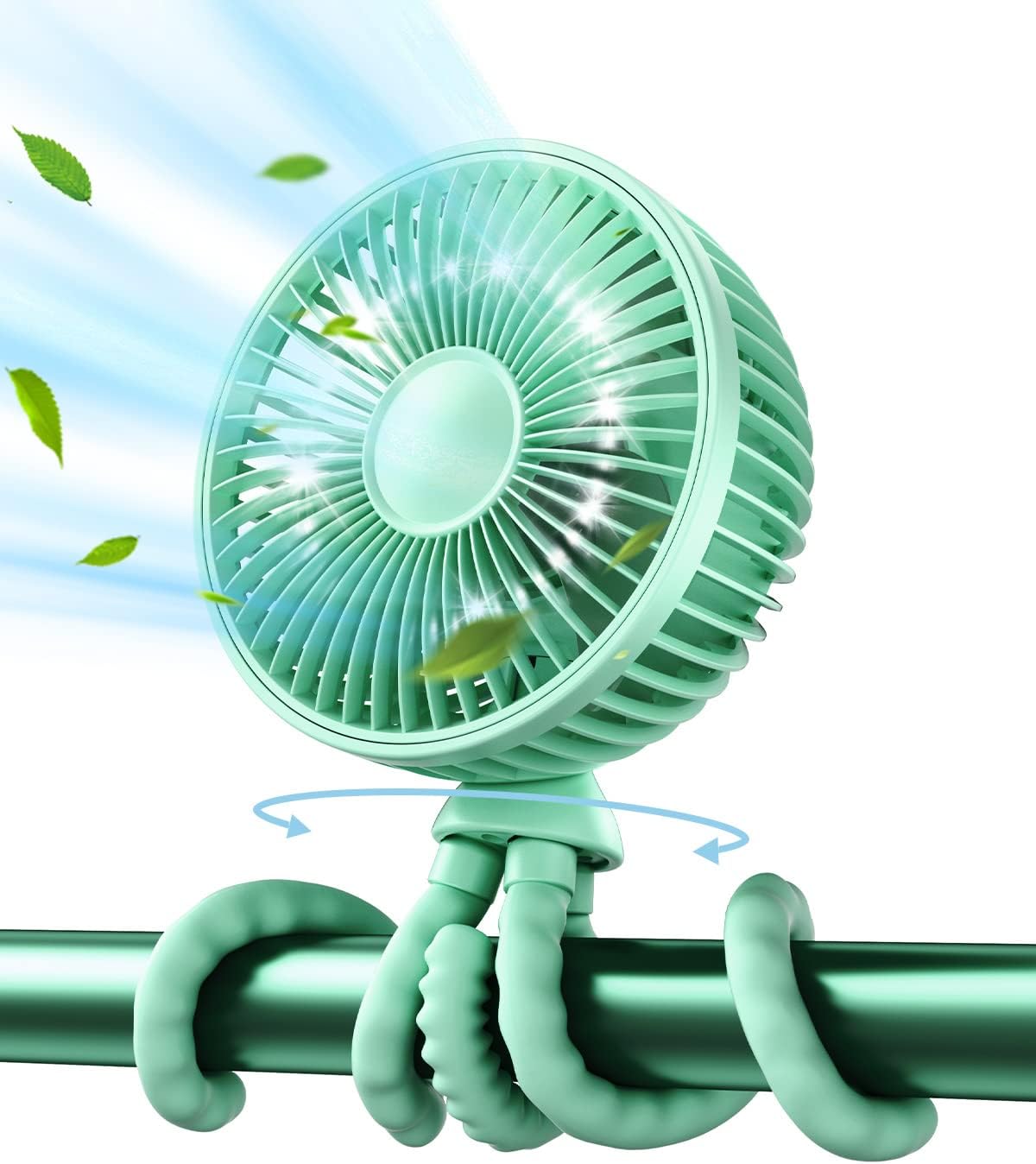 - Upgraded Tripod and Safe Gap for Baby: The entire arms of the handheld fan are food-grade silicone for great grip; 5.6 mm gap of baby fan is smaller than other desk fans, safe for little fingers; Stroller accessories and fans for baby infants and toddlers