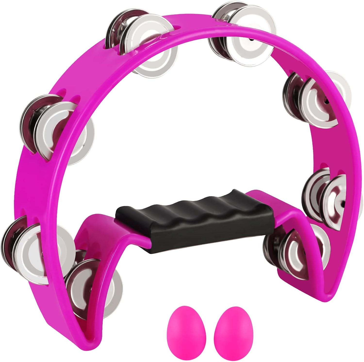 EastRock Tambourine,Metal Jingles Hand Held Percussion Half-Moon Tambourine and Egg Shakers for Adults, KTV, Party