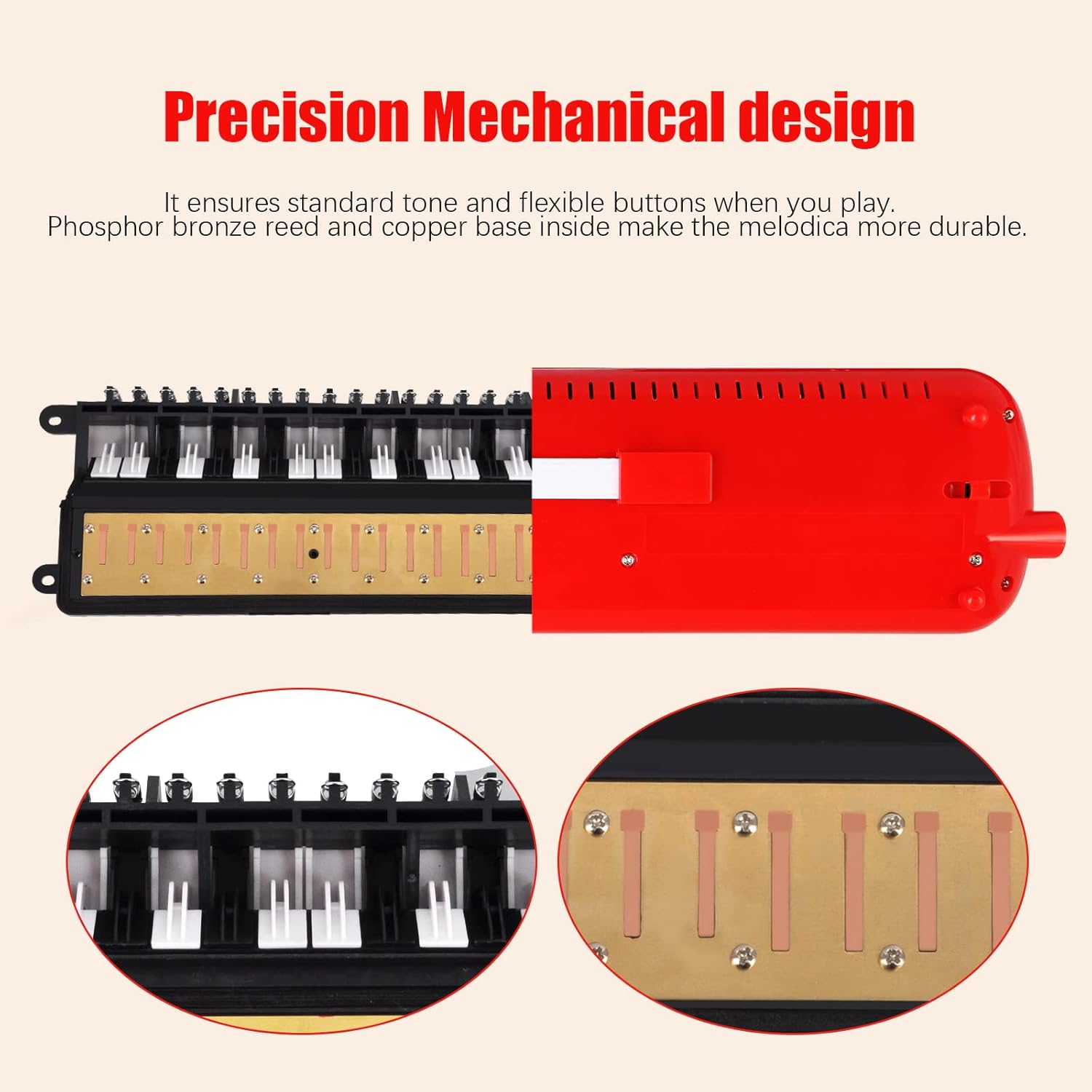 EastRock 32 Key Melodica Instrument Keyboard Soprano Piano Style with Mouthpiece Tube Sets and Carrying Bag for Beginners Adults Gift Red
