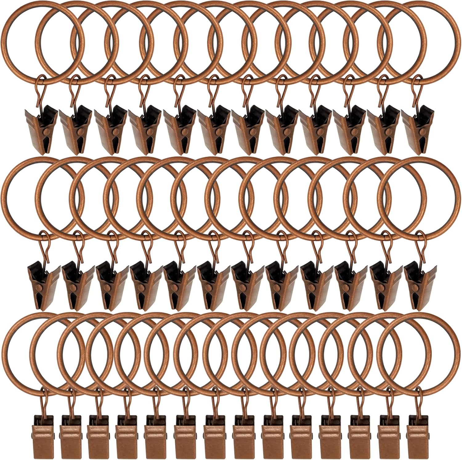40 Pack Antique Copper Curtain Rings with Clips, Curtain Hooks Hangers Clip Rings for Hanging Drapes Bows Hat, Drapery Rings 1.26 in I D, Fits up to 1 in Diameter Curtain Rod.