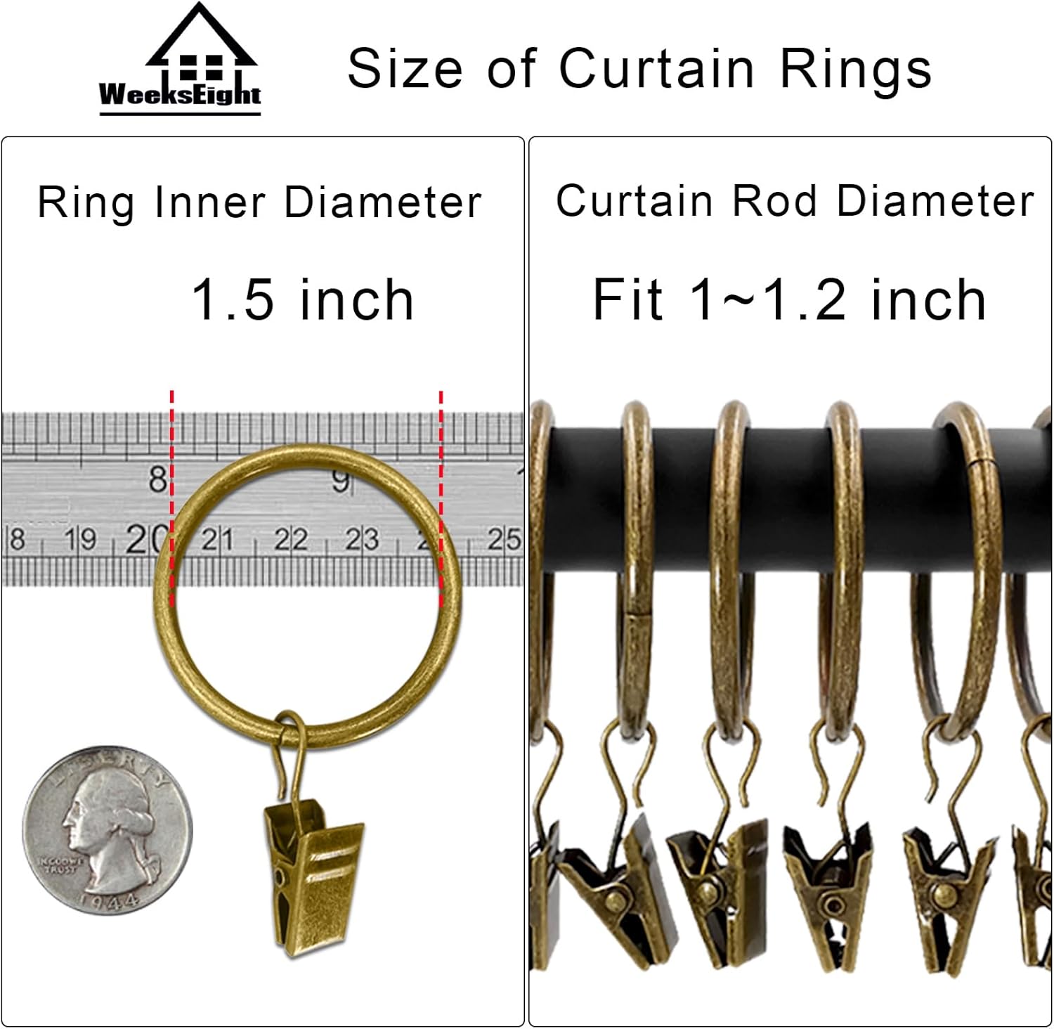 - 【Curtain Rings Slide Easily】Curtain rings eyelet inner diameter 1.5 in, drapery rings with clips for used in ones 1-1.38 in curtain rod and that’s the perfect size, the curtains slide easily, multiple times a day and function perfectly, make your life full of fun.