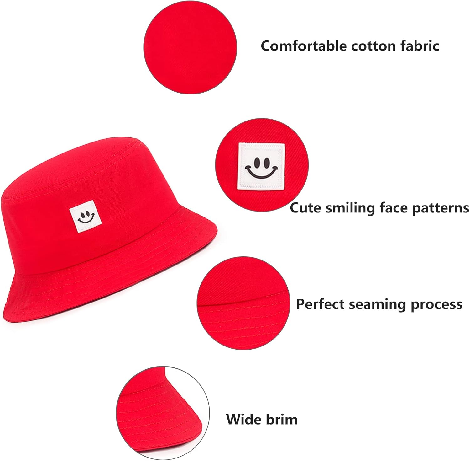 - 【Lovely and Stylish】Designed for unisex,our bucket hats come in various distinct colors to match your children individuality;The pretty smile logo makes it a great design;Easy to wear and pair with other clothes,suitably perfect for both boys and girls;Makes your kids more adorable, fashionable and attractive;Ideal gift for your cute baby