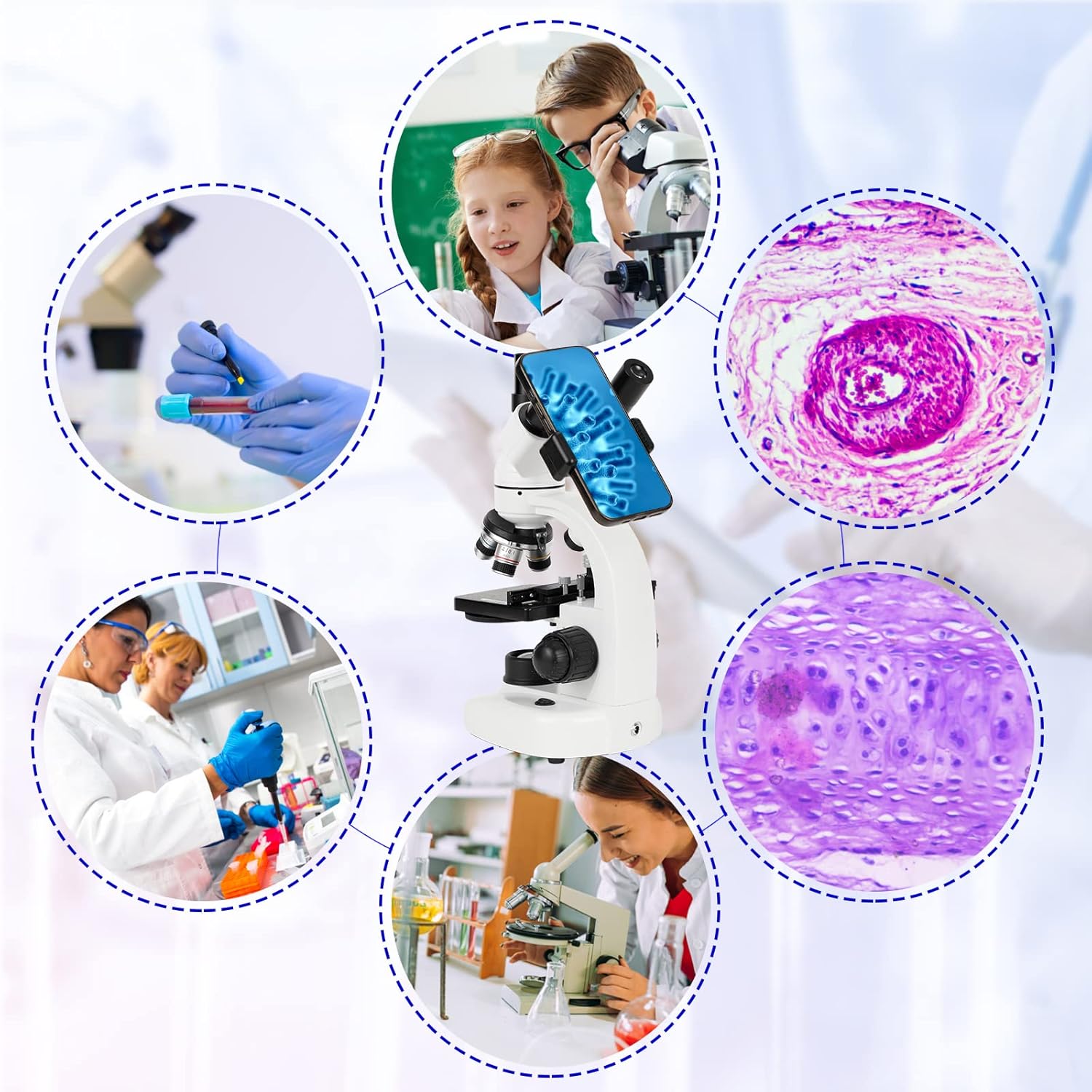 - 【Trinocular compound microscope】This 40X-5000X biological microscope is designed to help doctors/amateur scientists/enthusiasts explore the wonderful world of life. Versatile compound microscope for viewing minute details on slides; designed for clinicians, high school and college science students, and enthusiastic hobbyists.