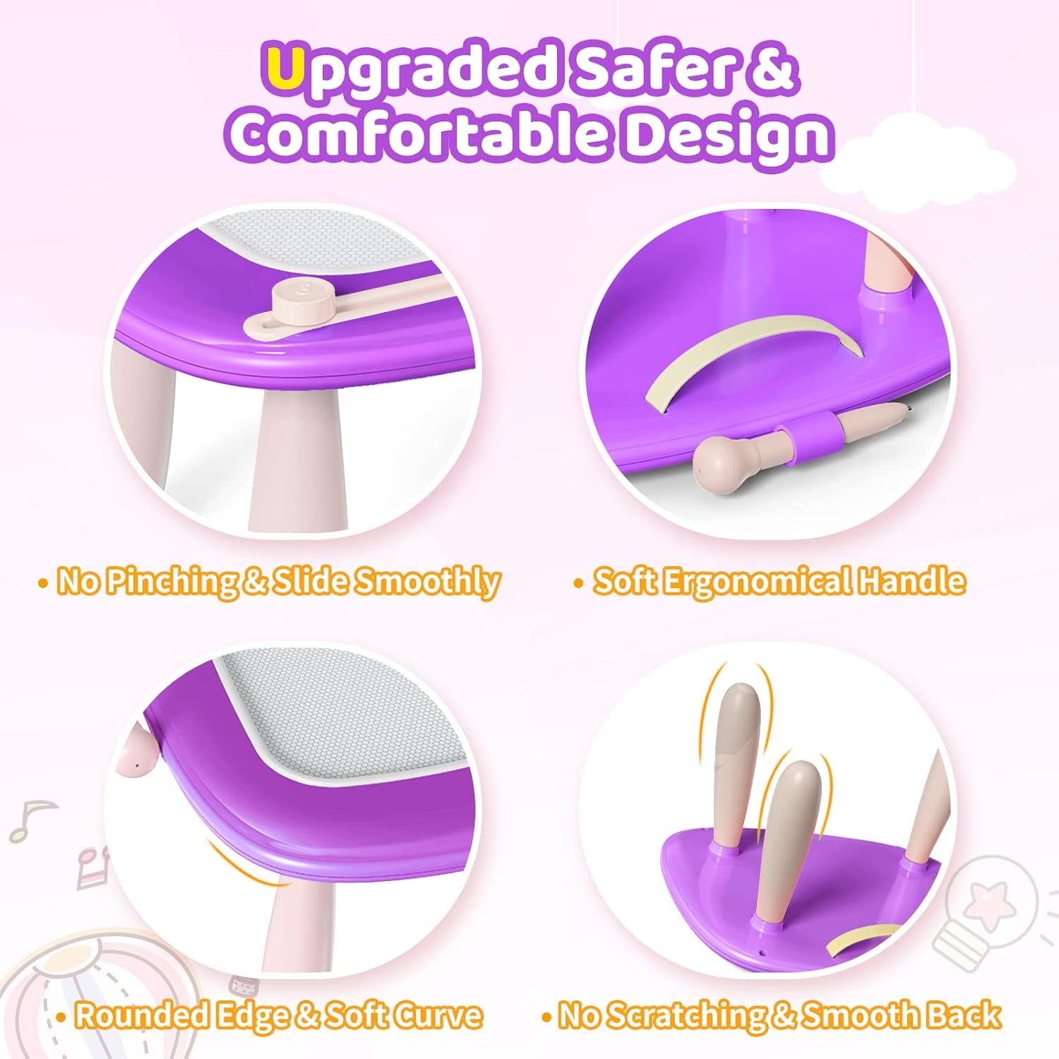 - Safety: Our magnetic drawing board is crafted with top-notch ABS material, ensuring both durability and quality. Safety is our utmost priority, which is why this board is non-toxic, BPA-free, and free from any small parts that could pose a choking hazard. We've taken extra precautions to make it child-friendly, with a Full-Sealed back and rounded corners to prevent any accidental scratches.