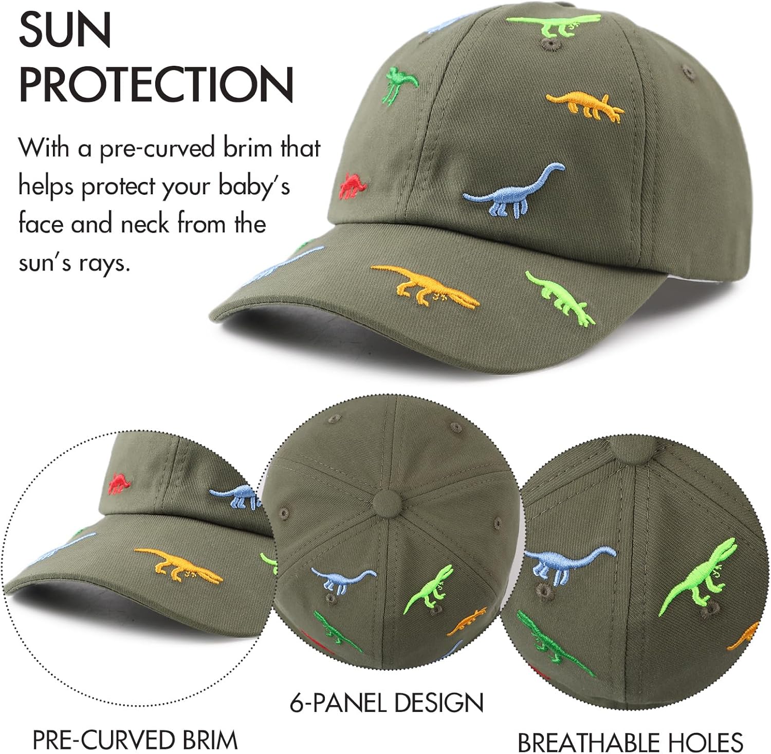 - FASHION DINOSAUR EMBROIDERY : Embroidery dinosaur pattern make your little one stylish and he/she would love to wear this hat with lovely dinosaur. The cute baby cap also designed several classic colors, easy to match other outfits. It is the best way to make your baby trendy. This cute hat is the best choice for you.