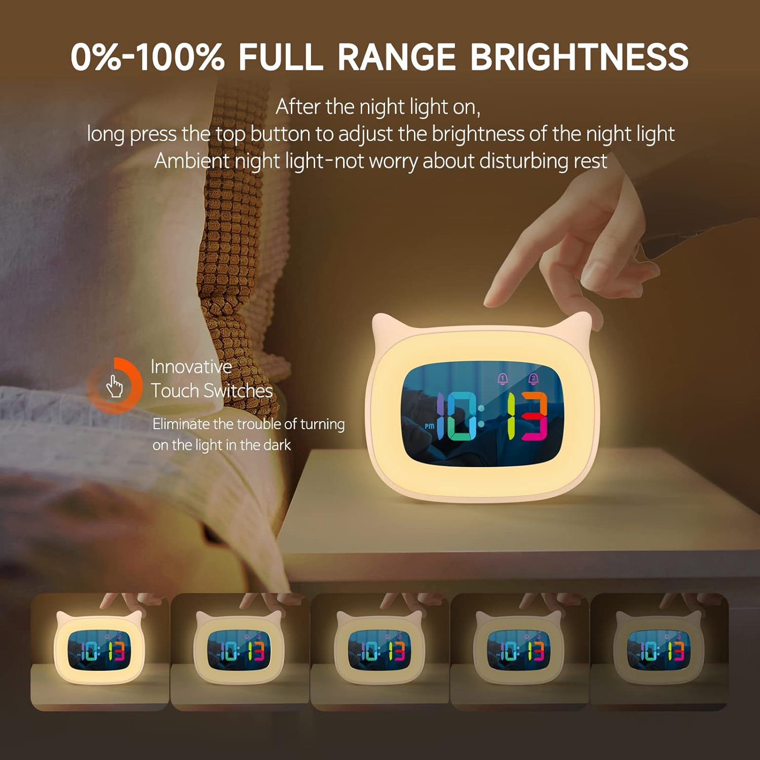 Cute Cat Ear Alarm Clock with RGB 7 Color Night Light & 18 Ringtones,Rechargeable Clock for Kids Bedroom,LED Colorful Digital Display,Bedside Clock for Boys,Girls Birthday Presents(Pink)