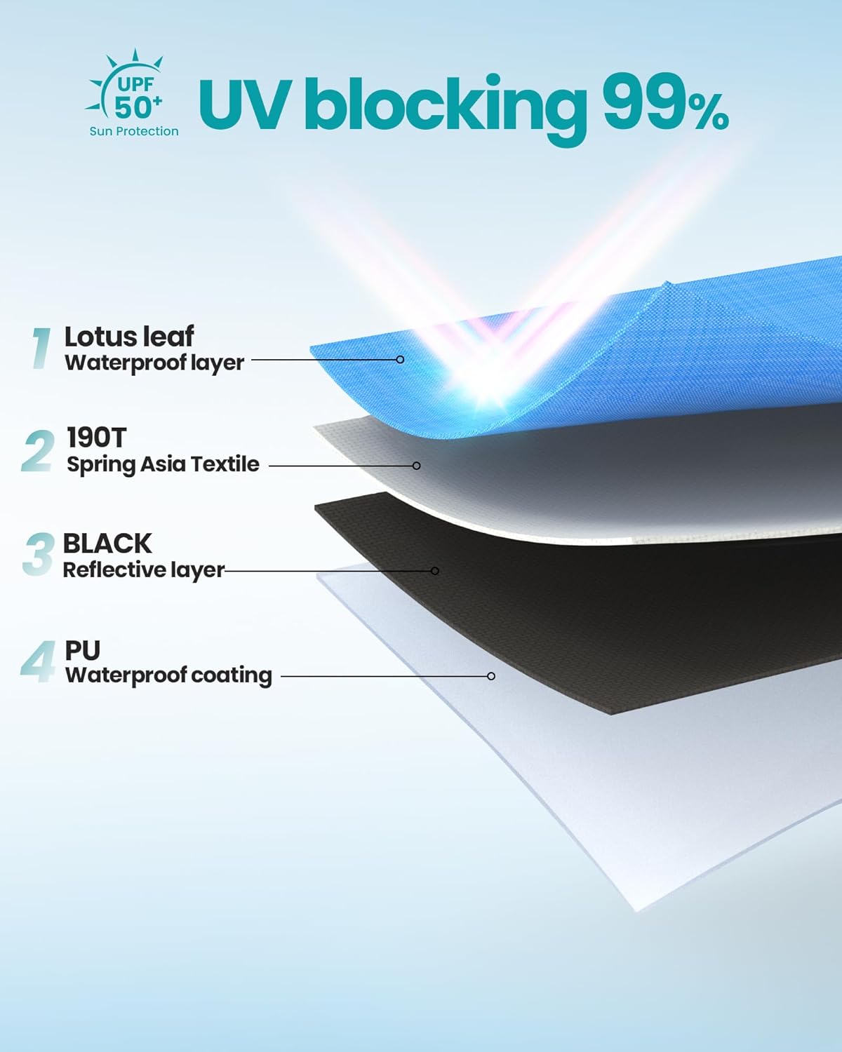 - Blackout Shelter Technology: Our Instant Shade Blackout Shelter is different from others on the market as it not only blocking 99.95% of UVA and UVB rays (UPF 50+), also eliminates 95% sunlight to protect your skin and objects for a more comfortable rest anytime of day
