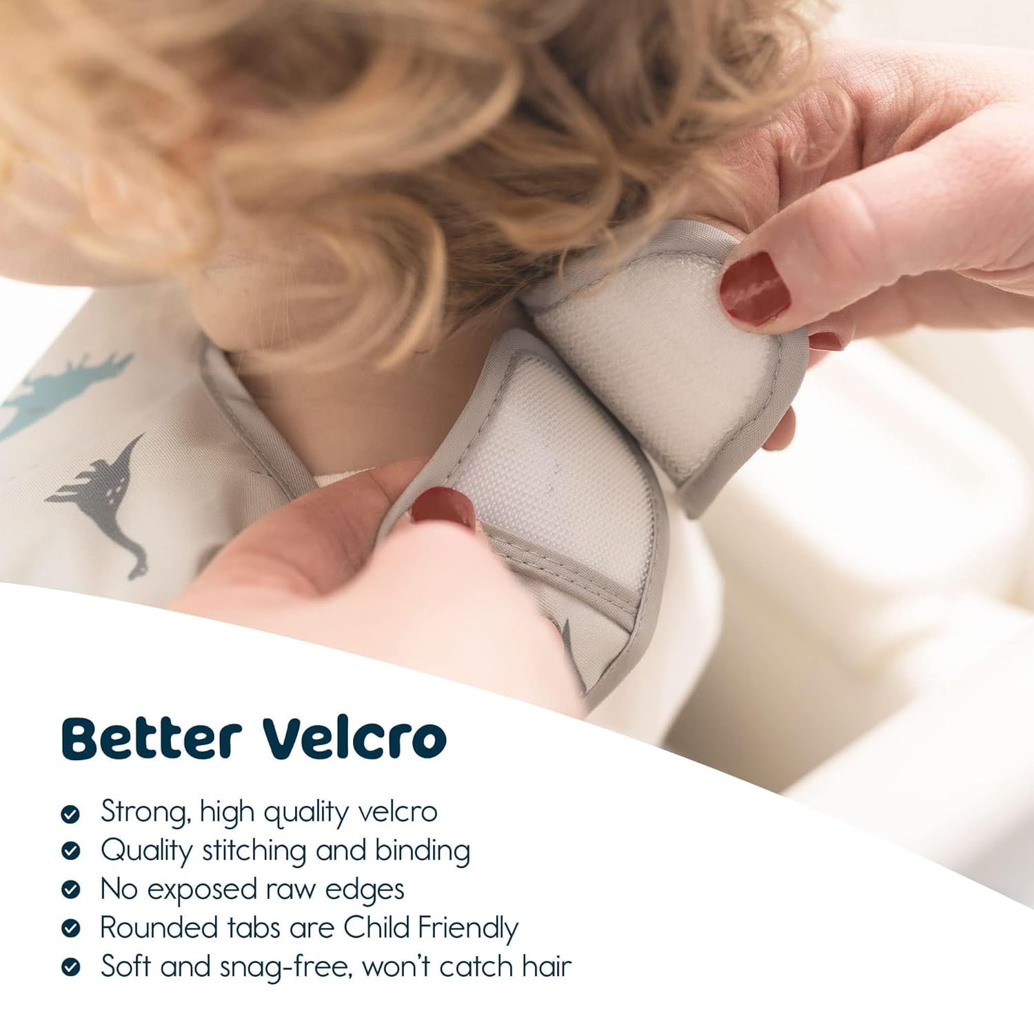 - EASY TO USE: Featuring a tug-proof closure that keeps the bib secure during baby-led weaning yet removes easily, our waterproof bibs won’t snag hair or irritate skin. Perfect for toddlers 1-3 years and messy eaters, the hassle-free design lets you focus on feeding fun instead of scrubbing food stains!