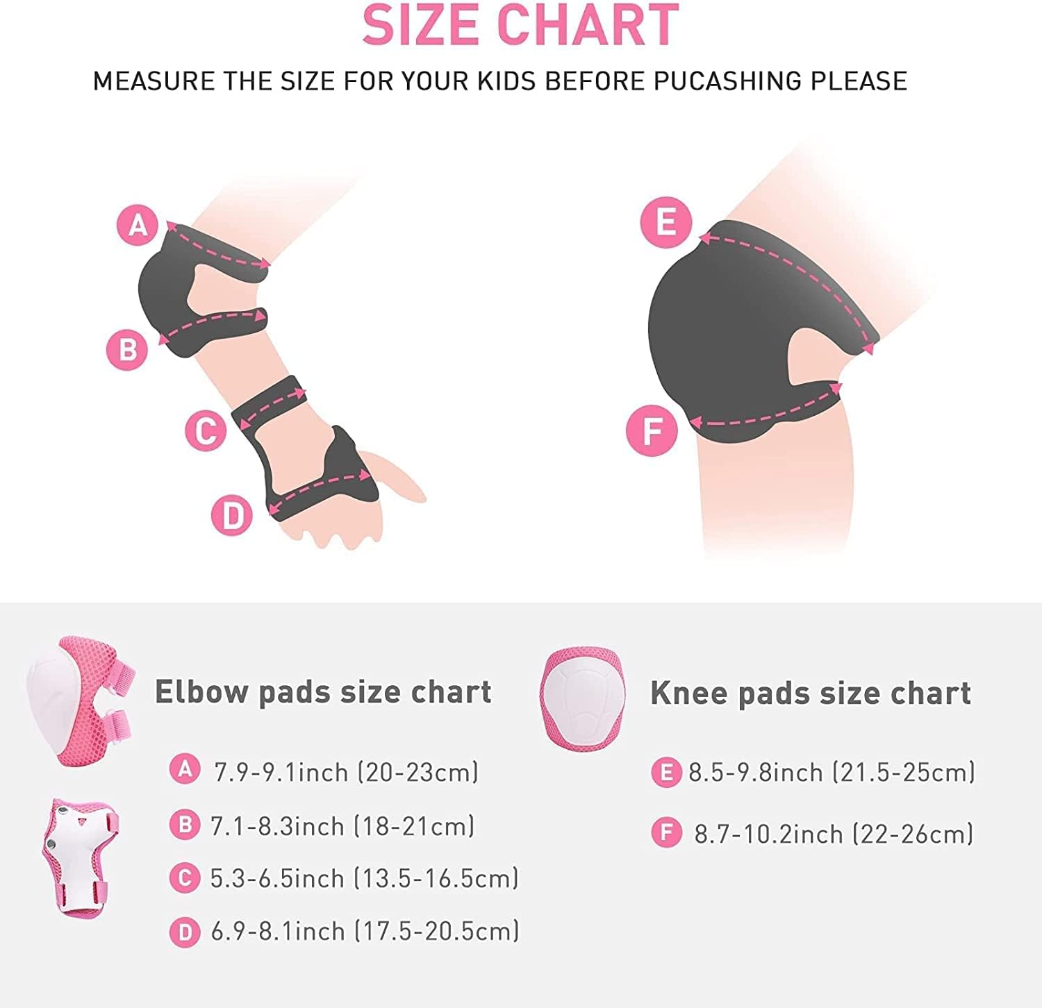 - 【SIZES AVAILABLE】The adjustable straps and closures on the helmet and protective gear make it easy to fit different sizes of knee, elbow, and wrist. It is flexible, secure, and can be adjusted and released quickly for added convenience. Helmet size S: 20''-21.3''(51-54cm) suitable for kids boy or girl ages 5-8 years old.