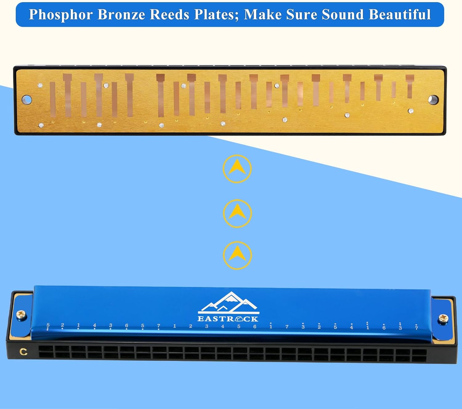 EastRock Blues Harmonica 24 Hole C Key with Case, Mouth Organ Harp, Diatonic Harmonica for Beginner