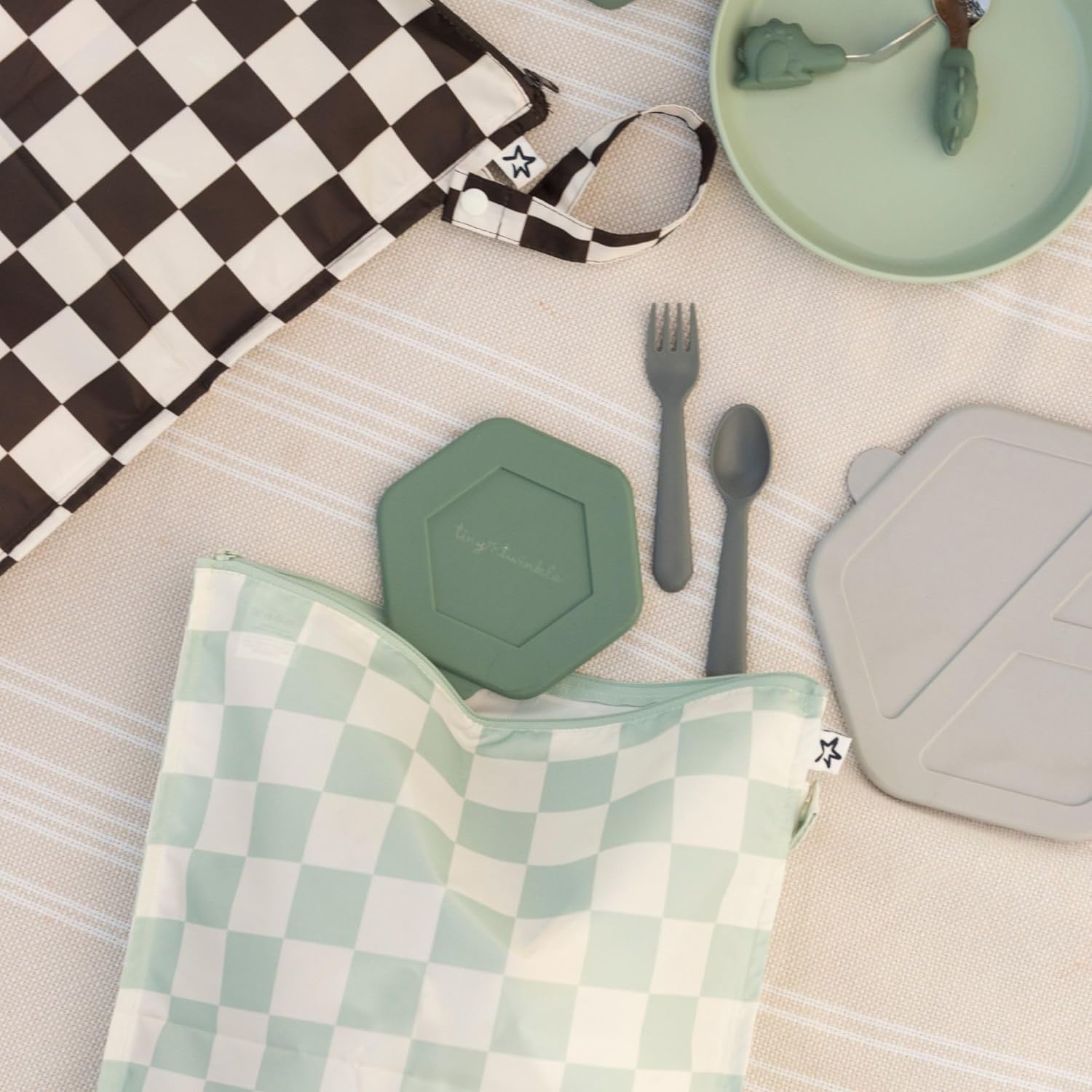 Tiny Twinkle Mess-Proof Waterproof Wet Dry Bag | 2-Pack Reusable Wet Bags for Swimsuits & Baby Clothes | Leakproof Wet Bag for Travel & Diaper Changes for Baby (Black, Green Checkers)