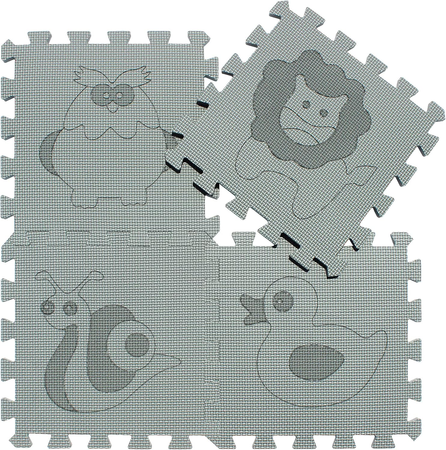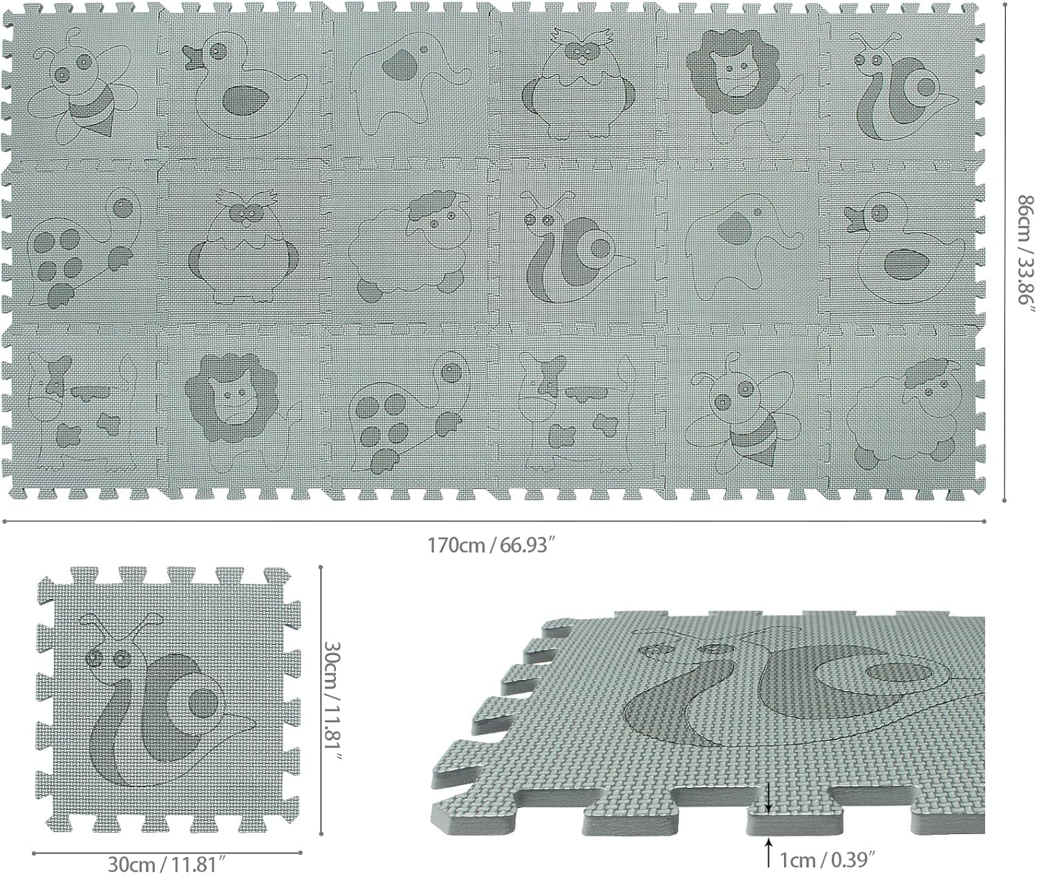 qqpp EVA 18 Tiles Baby Play Mat for Playing, Interlocking Foam Floor Mats for Tummy Time & Crawling, Puzzle Flooring Tiles with Animals Laser Pattern for Kids. Gray. QL-11(L) b18N