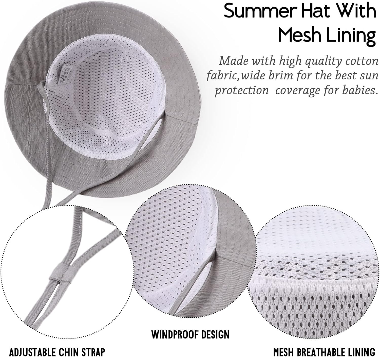- MATERIAL: The cute baby sun hat made of 100% cotton the exterior and polyester mesh lining . The tailored design ensures that it is breathable and comfortable, and also providing an ideal environment for our cherished babies to grow. It is recommended to use a mild, neutral detergent and wash it gently with cold water, preferably by hand.